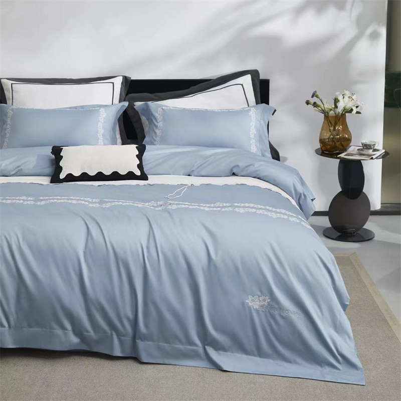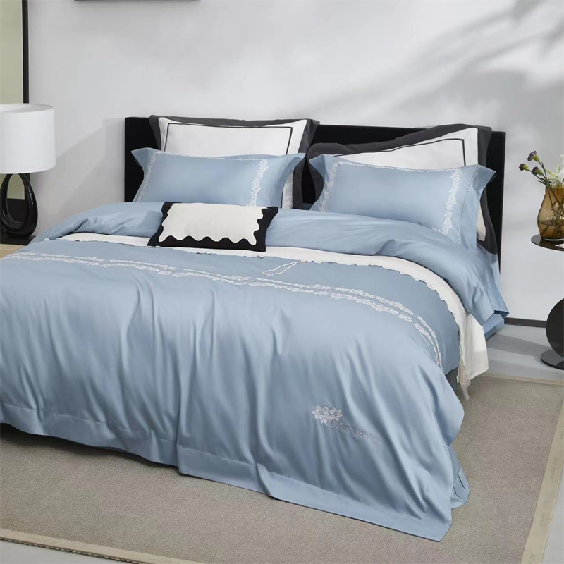 (总)玖玖爱家纺 2023新款120支贡缎长绒棉刺绣梦柔系列四件套,梦柔-香槟金,梦柔-香橙桔,梦柔-高级灰,梦柔-水蓝,梦柔-芙蓉玉