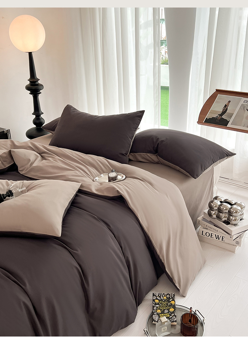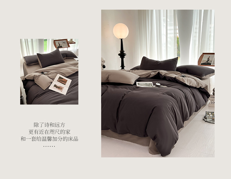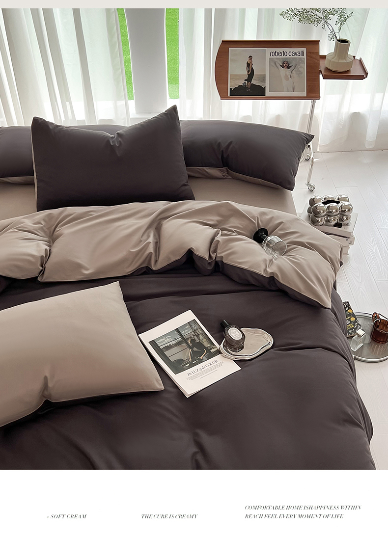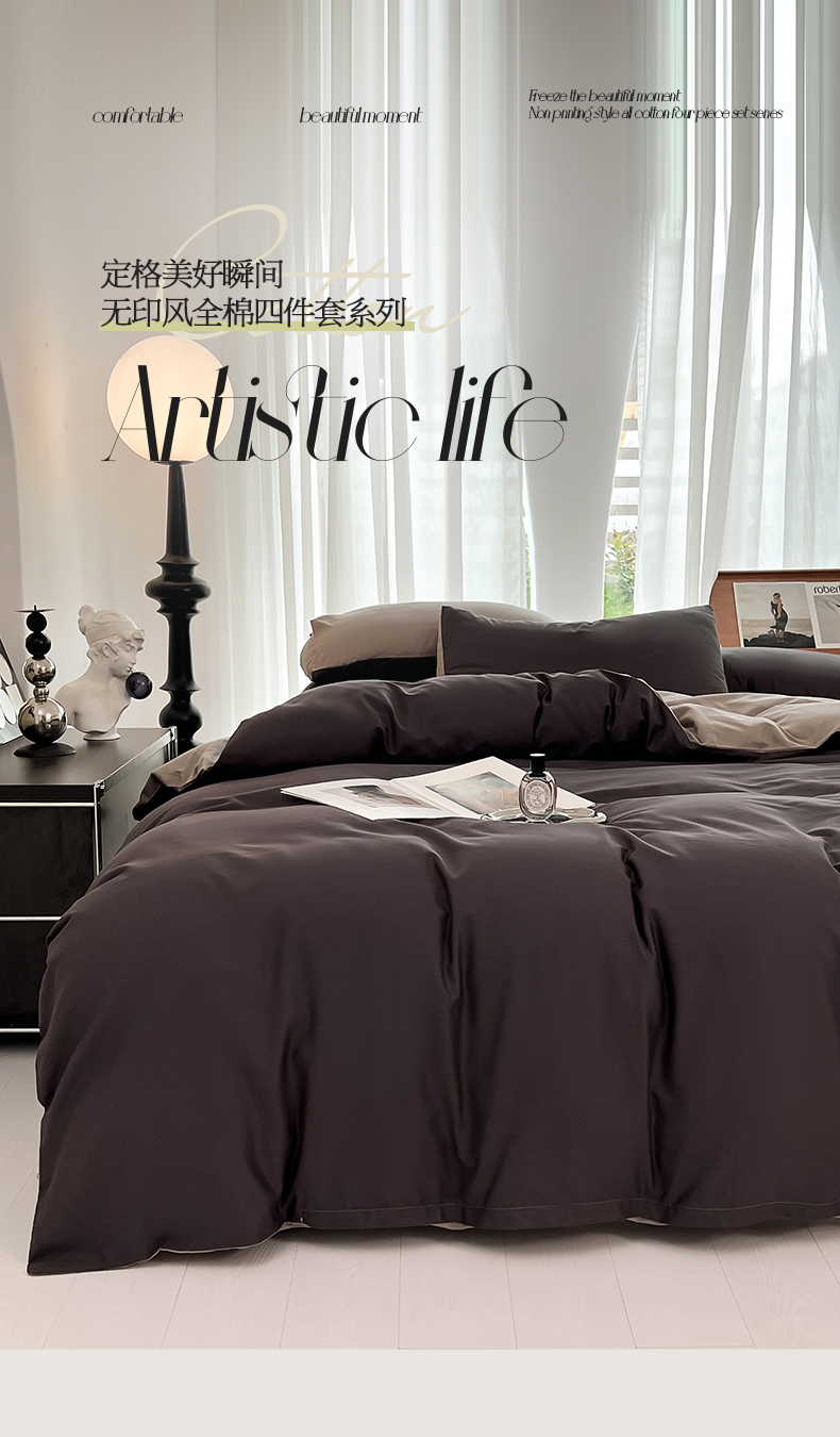 多品家纺 2024新款全棉纯色双拼四件套 赫本风