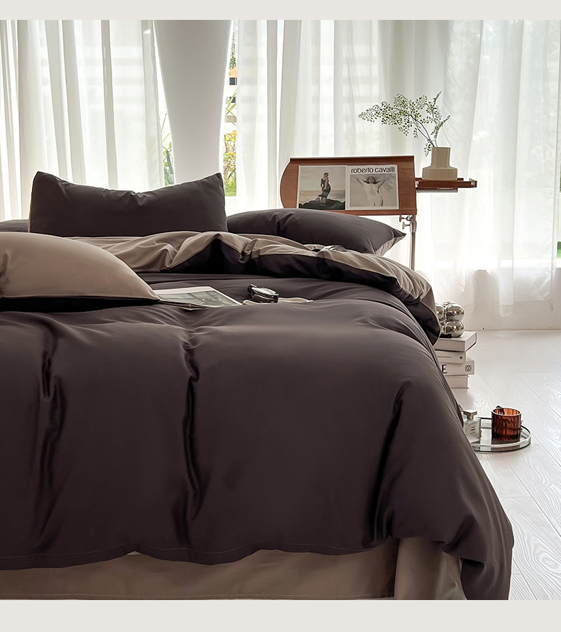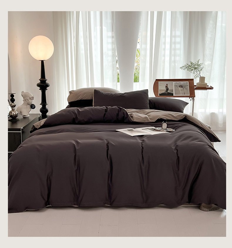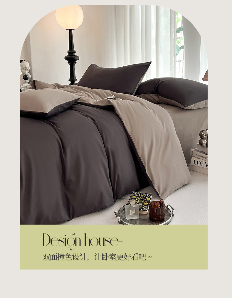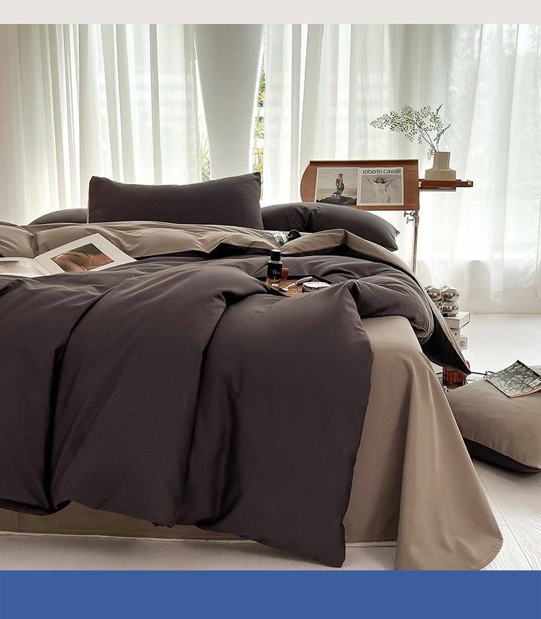 多品家纺 2024新款全棉纯色双拼四件套 赫本风