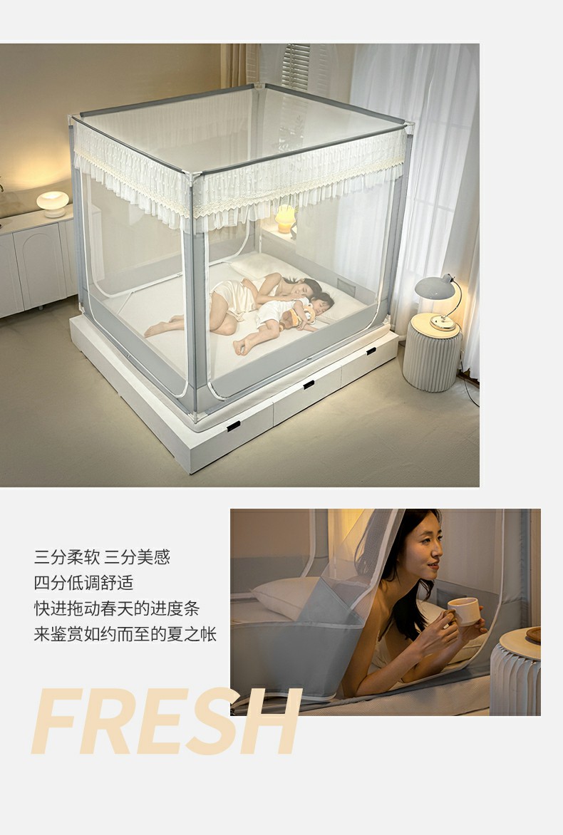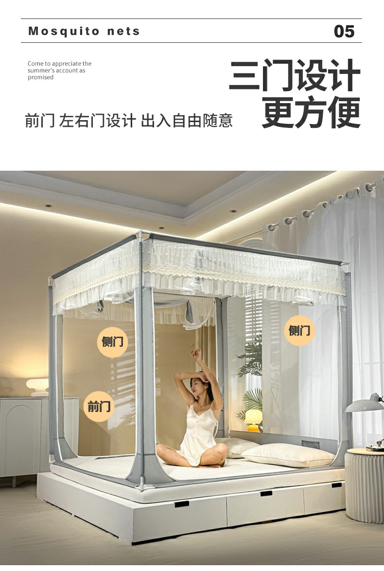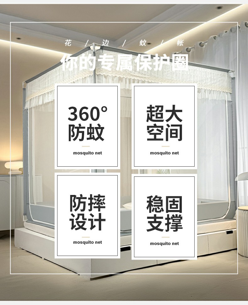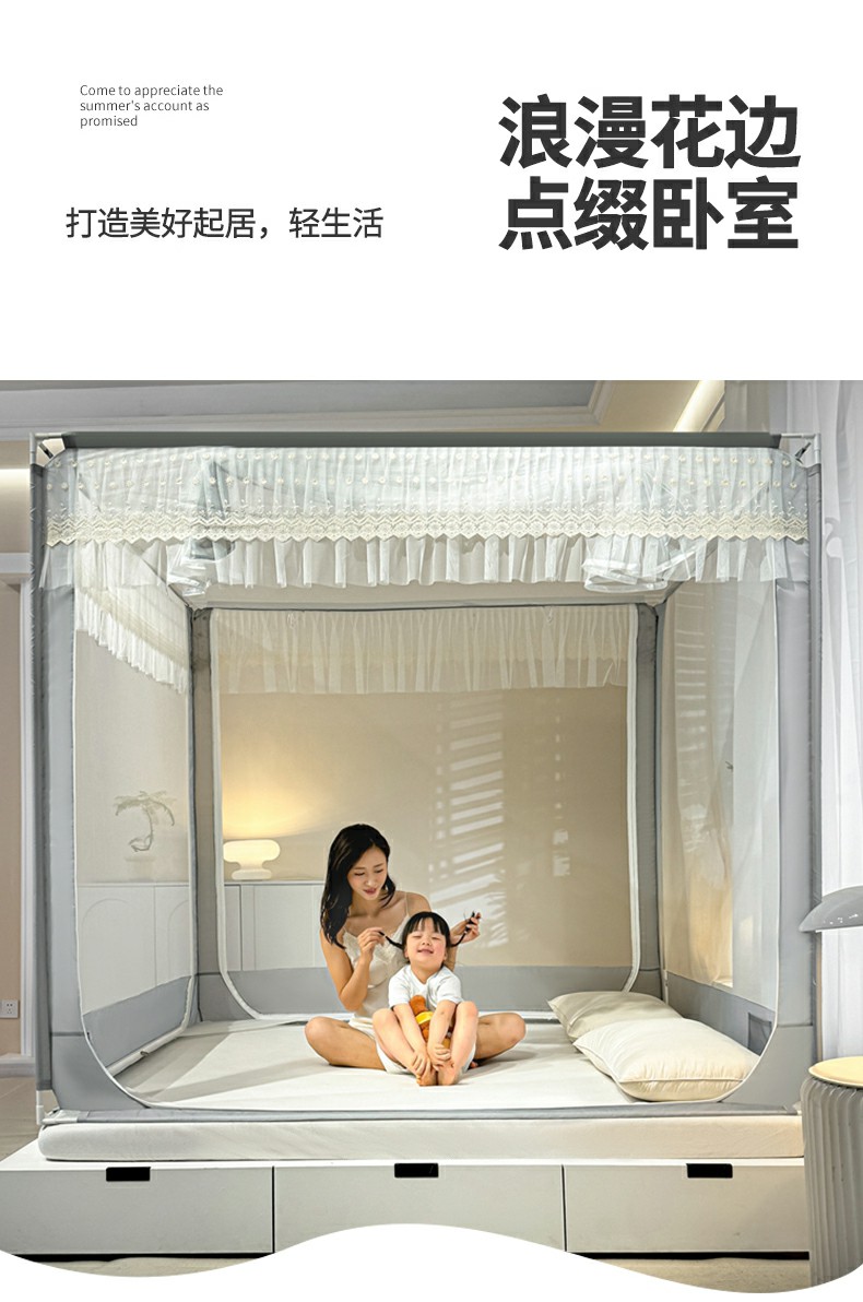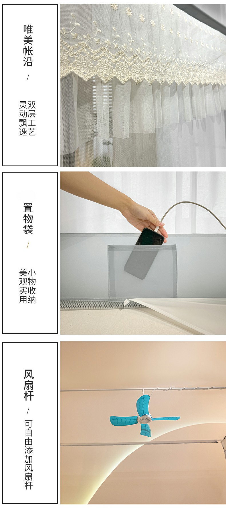 商品名称:青竹苑 2024新款铃兰花开外穿蕾丝花边坐床蚊帐 铃兰花开-简灰