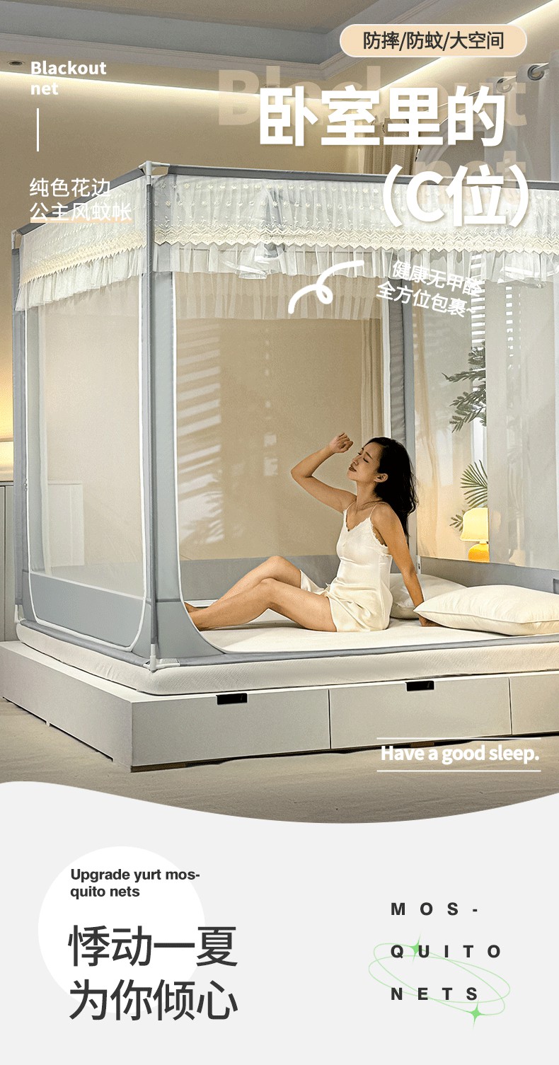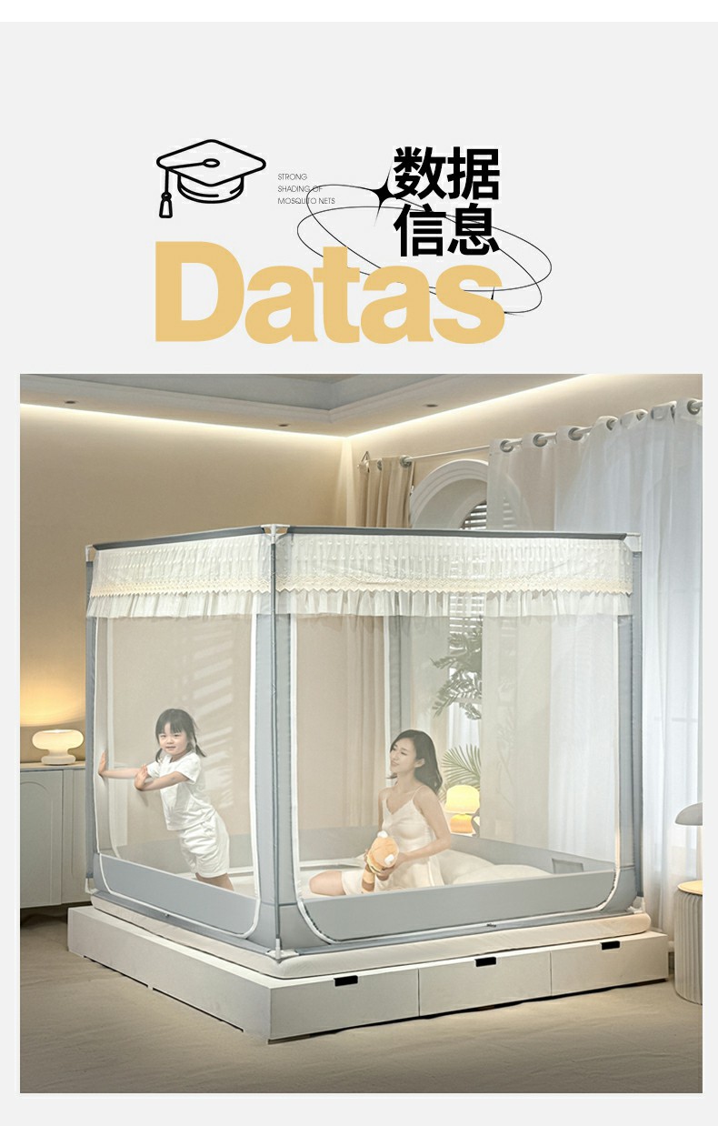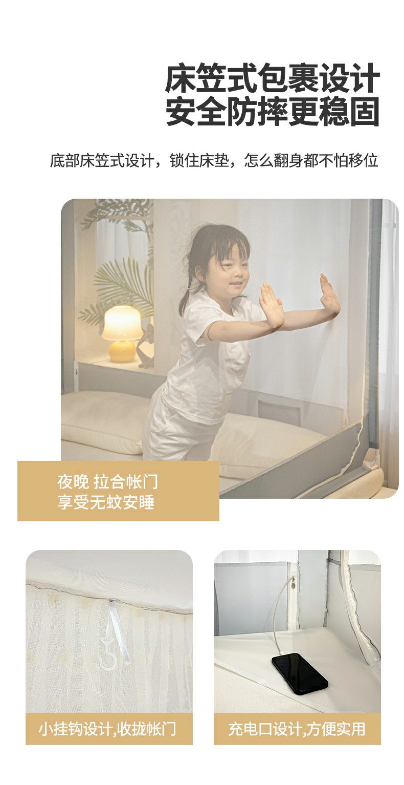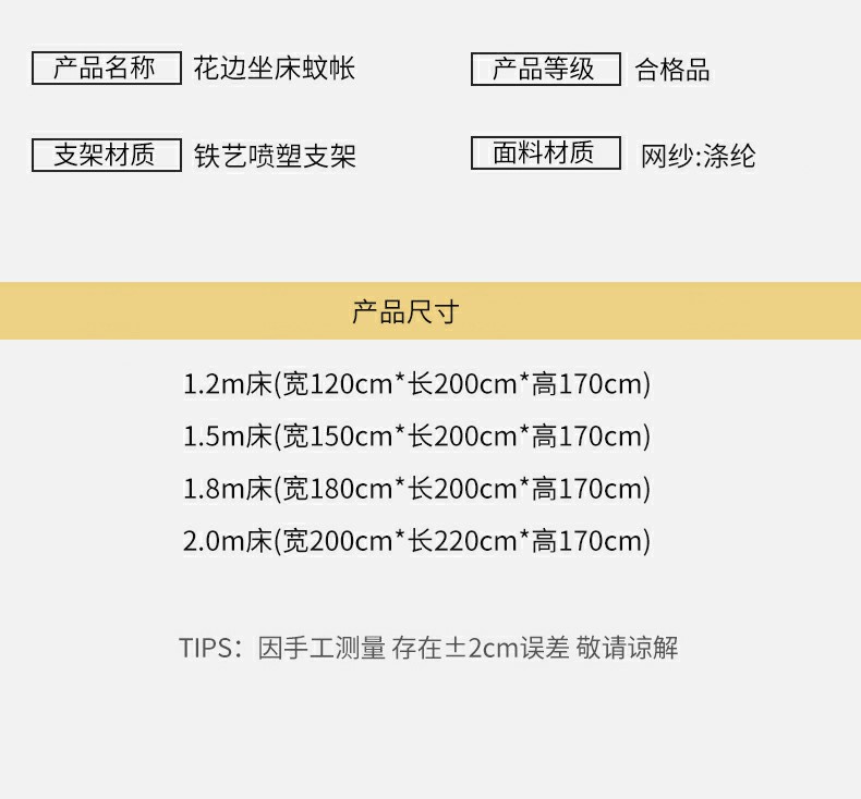商品名称:青竹苑 2024新款铃兰花开外穿蕾丝花边坐床蚊帐 铃兰花开-简灰