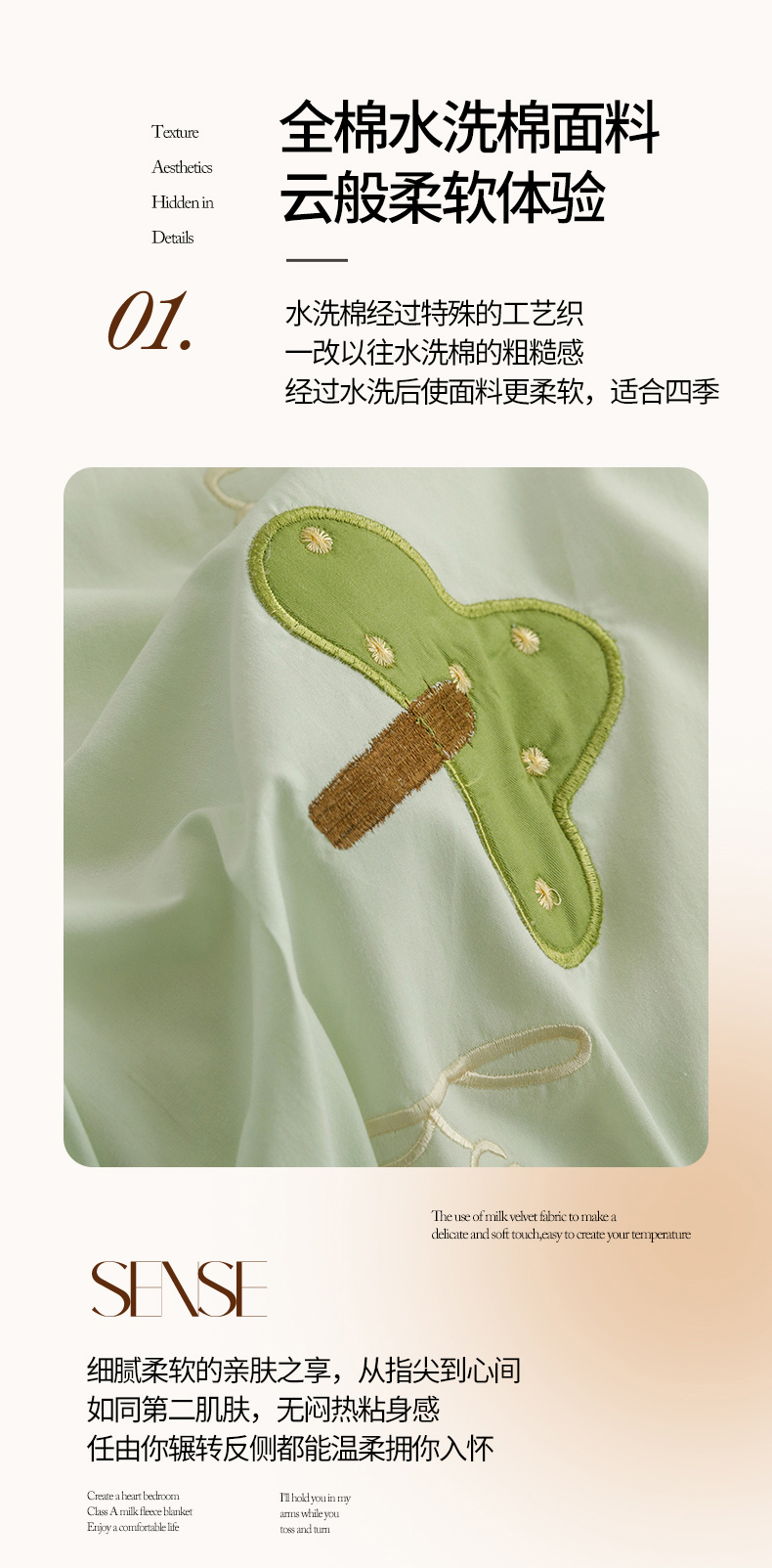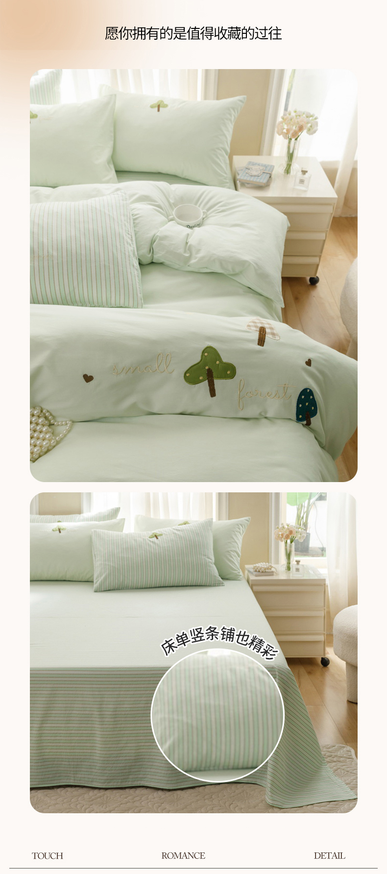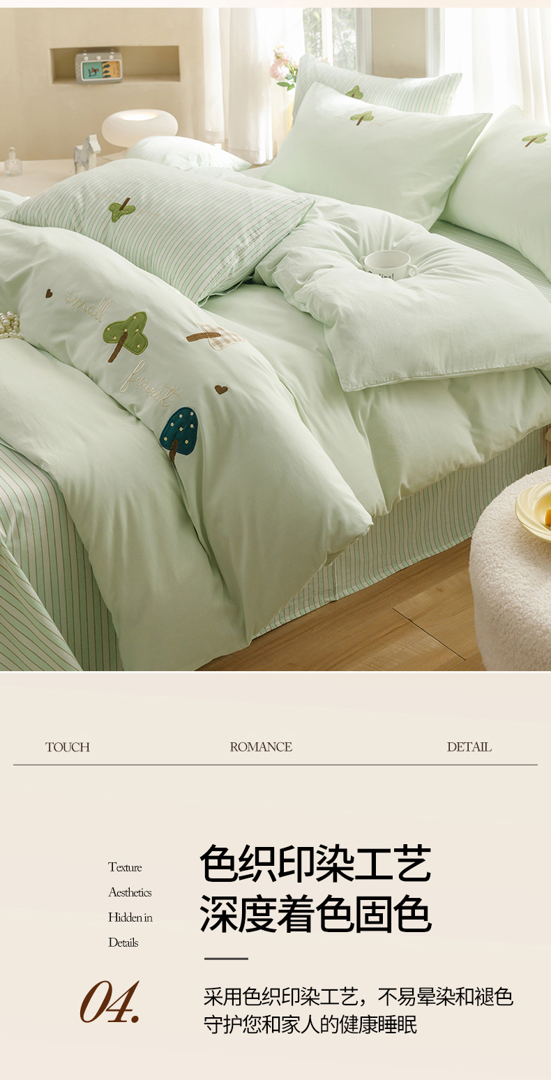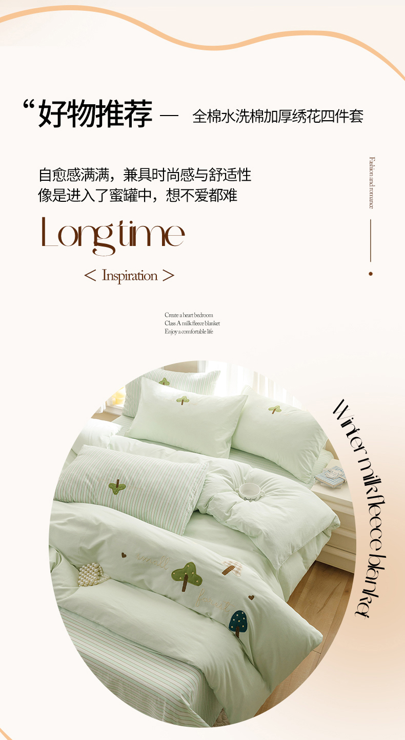 艾莱家纺 2024新款水洗棉加厚绣花四件套-眷恋 眷恋-青草绿