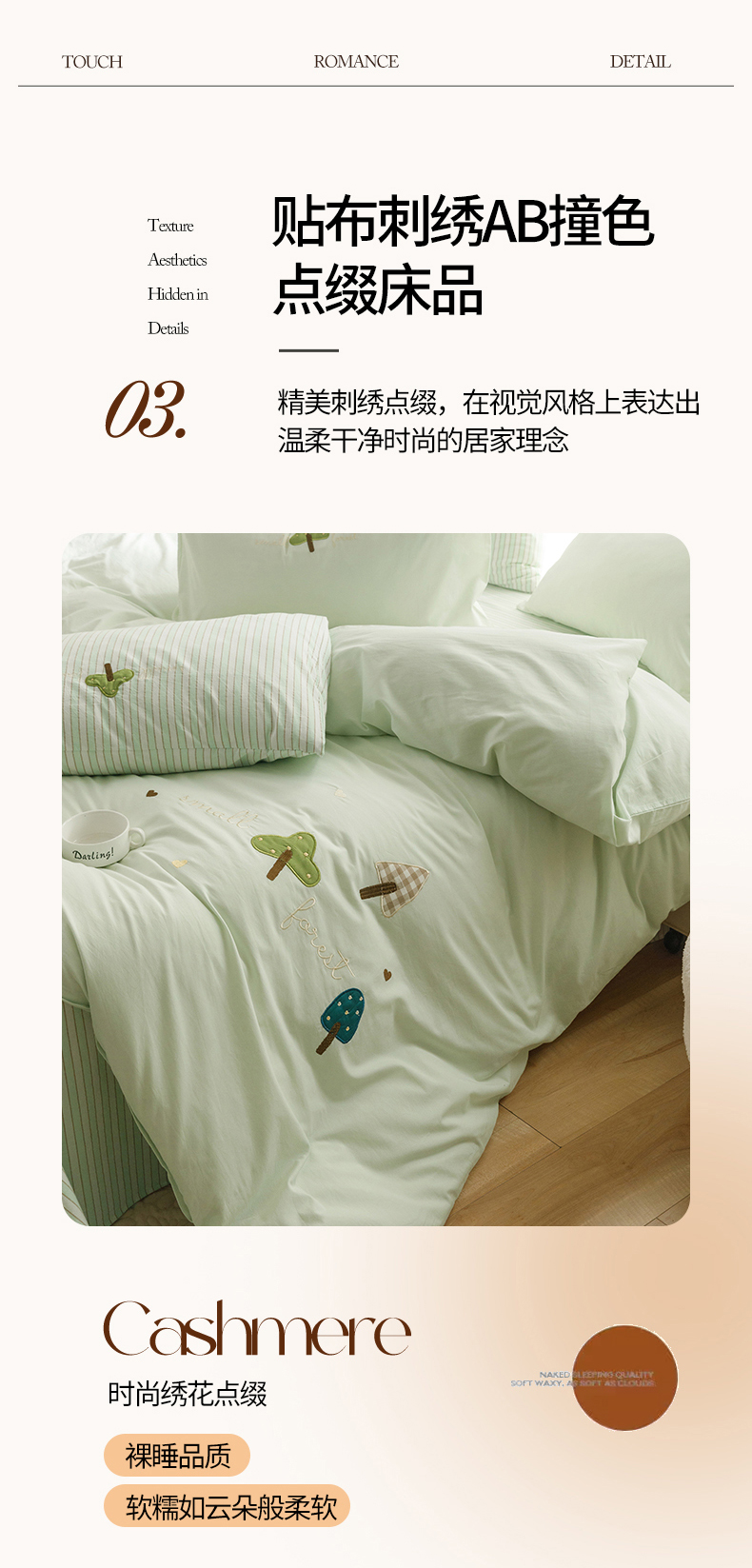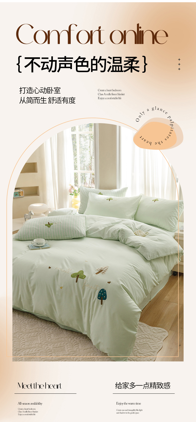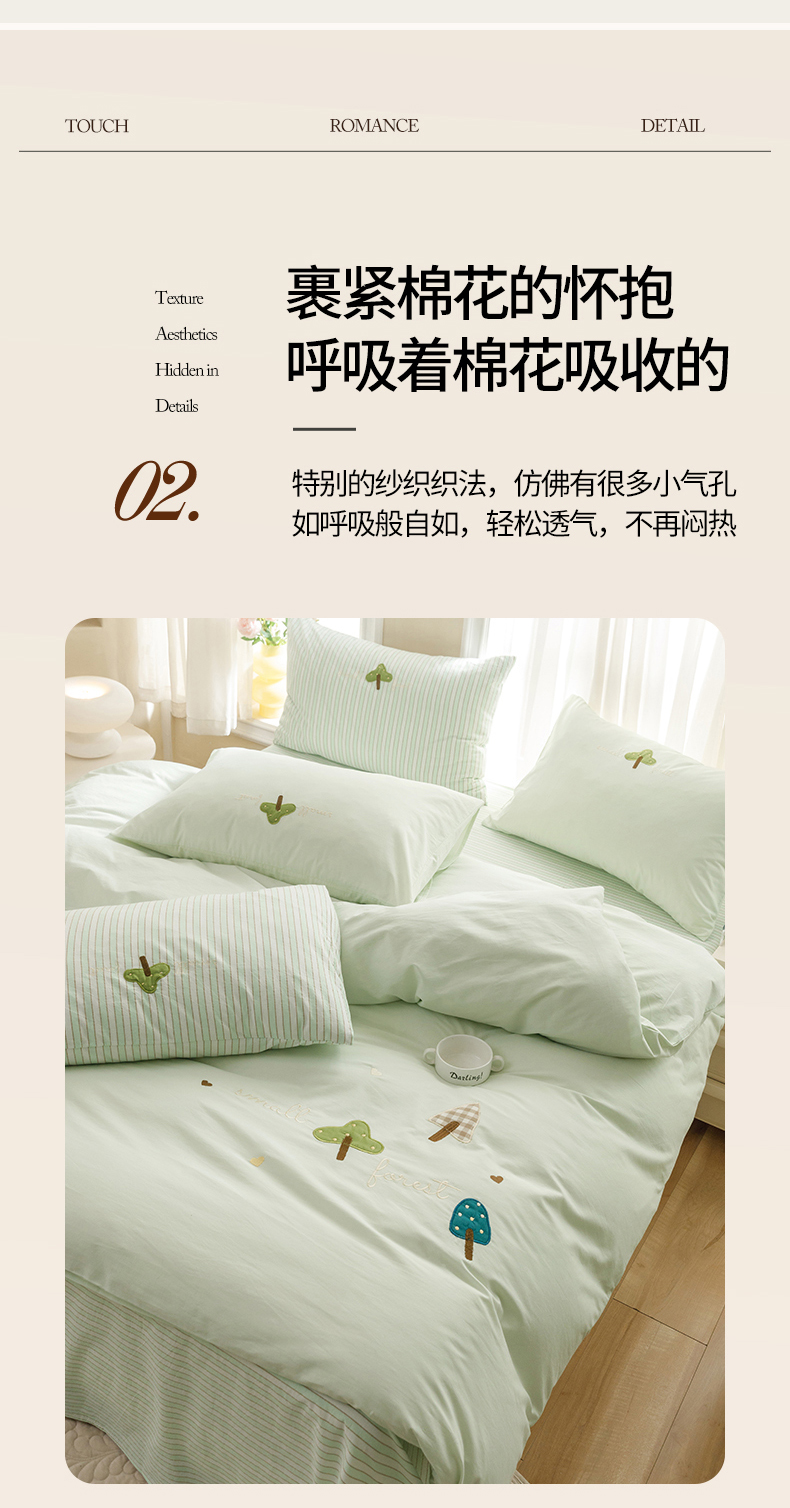 艾莱家纺 2024新款水洗棉加厚绣花四件套-眷恋 眷恋-青草绿