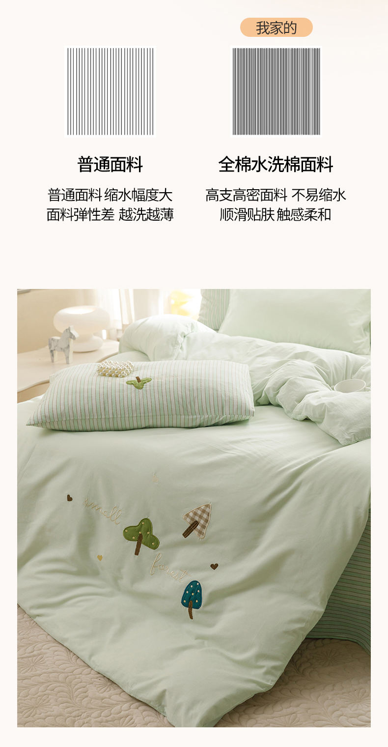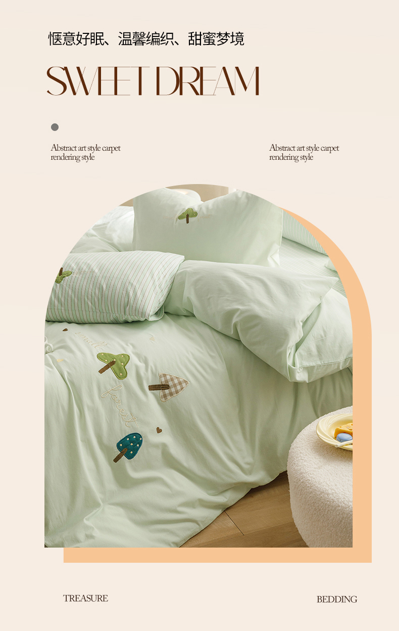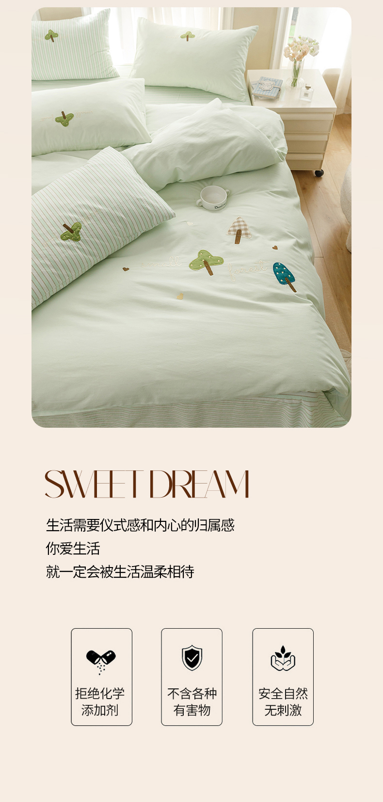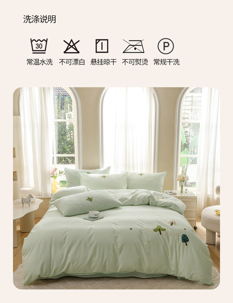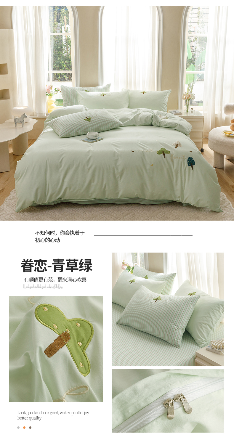 商品名称:艾莱家纺 2024新款水洗棉加厚绣花四件套-眷恋 眷恋-青草绿