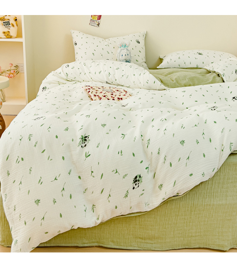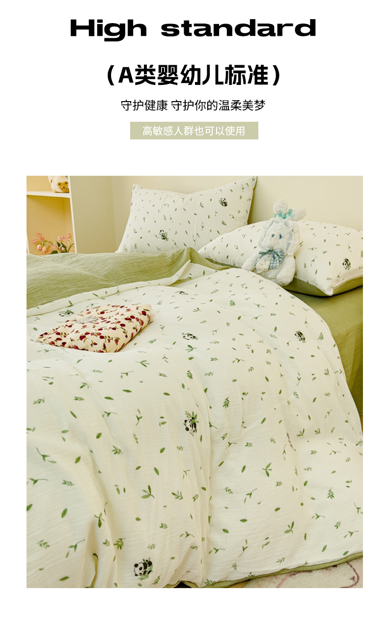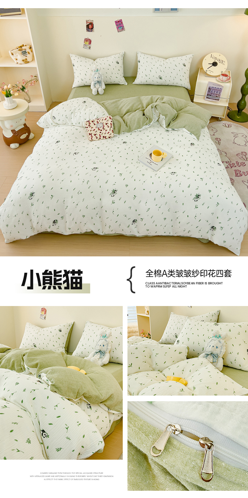 木楌 2025新款全棉A类皱皱纱印花四件套 小熊猫