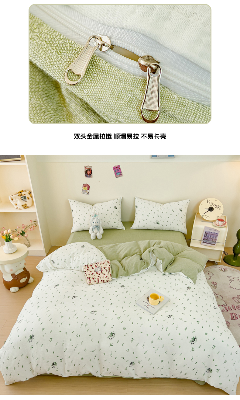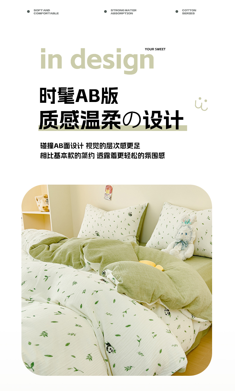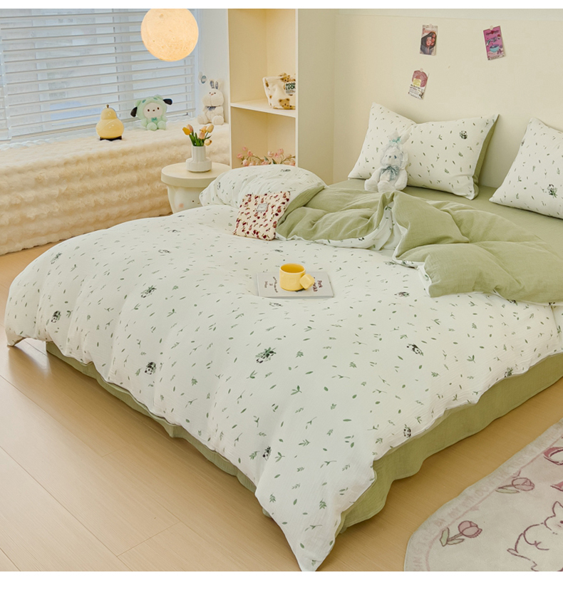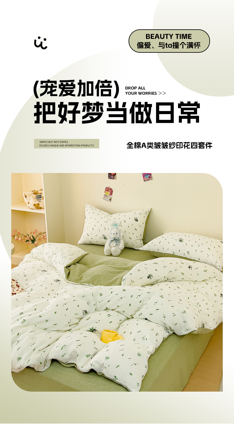木楌 2025新款全棉A类皱皱纱印花四件套 小熊猫