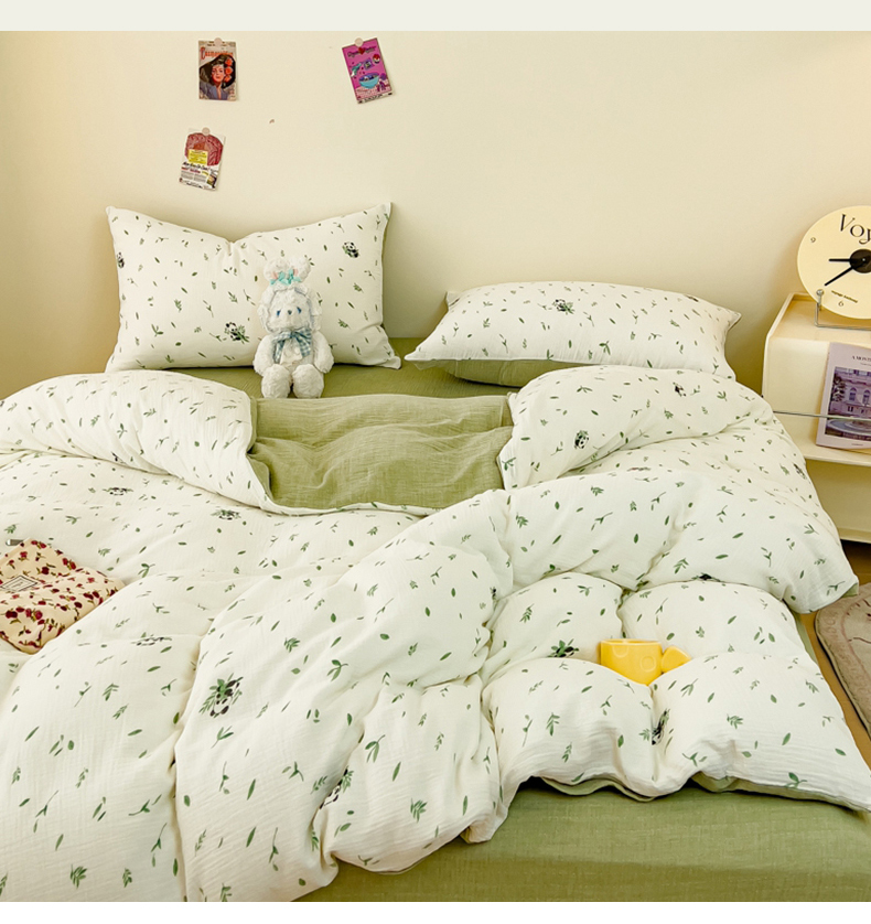 木楌 2025新款全棉A类皱皱纱印花四件套 丁香-绿,丁香-绿