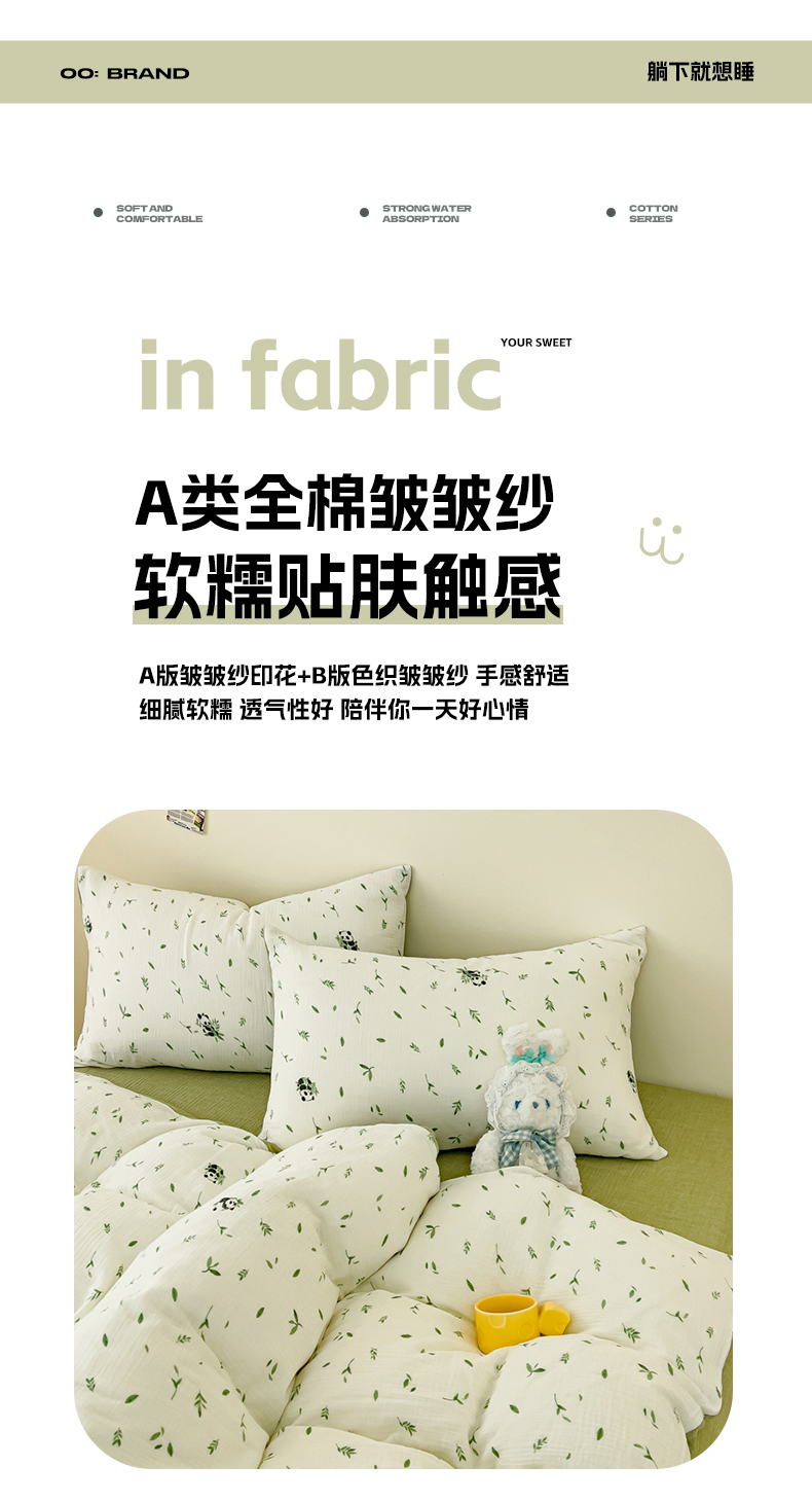 商品名称:木楌 2025新款全棉A类皱皱纱印花四件套 小熊猫