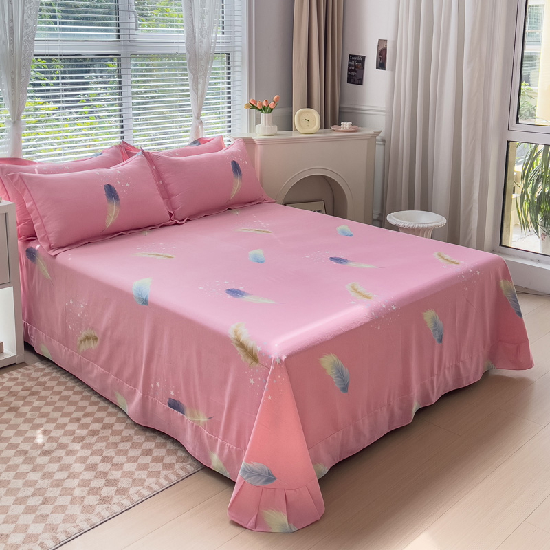 江南春 2024新款春夏全棉加厚磨毛床单 俏丽羽毛-粉,俏丽羽毛-粉