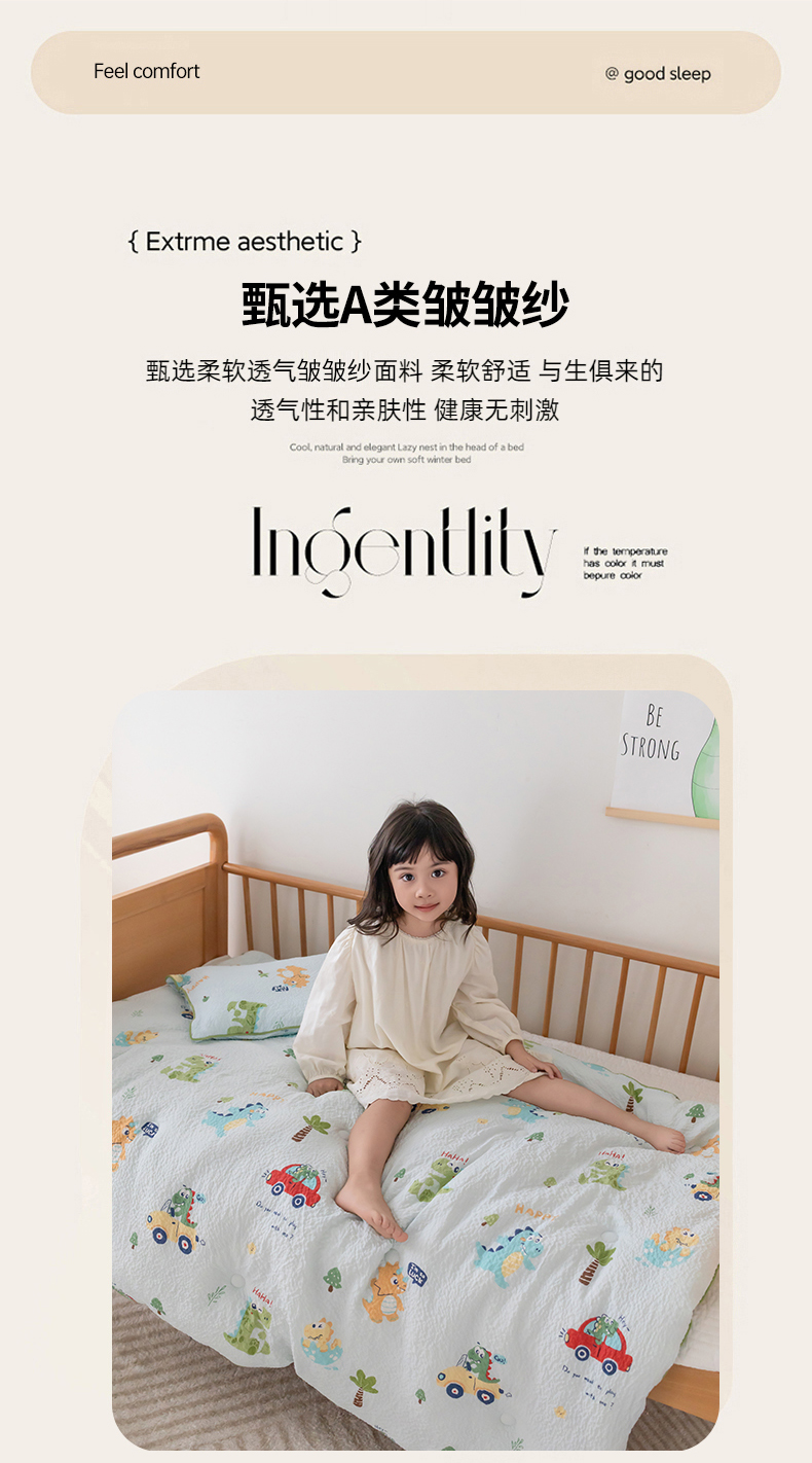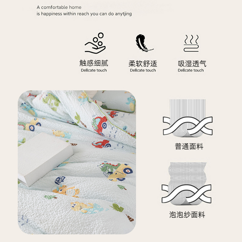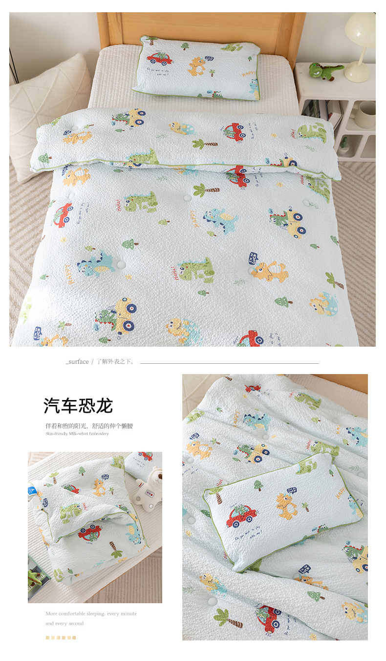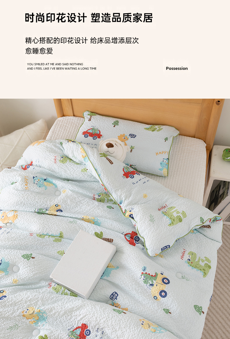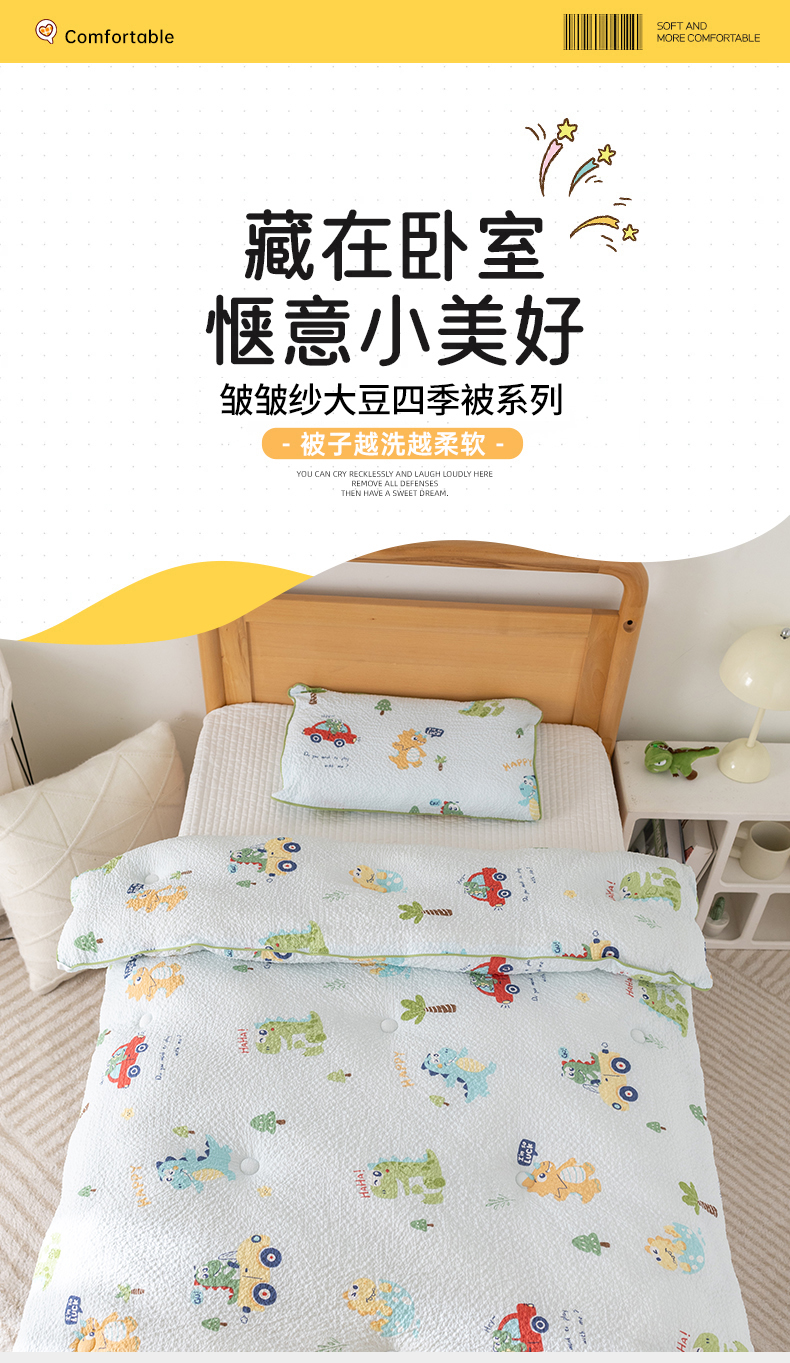 • 91家纺网 家纺一手货源 找家纺 心卓 2025新款儿童泡泡纱夏被大豆四季被被子被芯 汽车恐龙