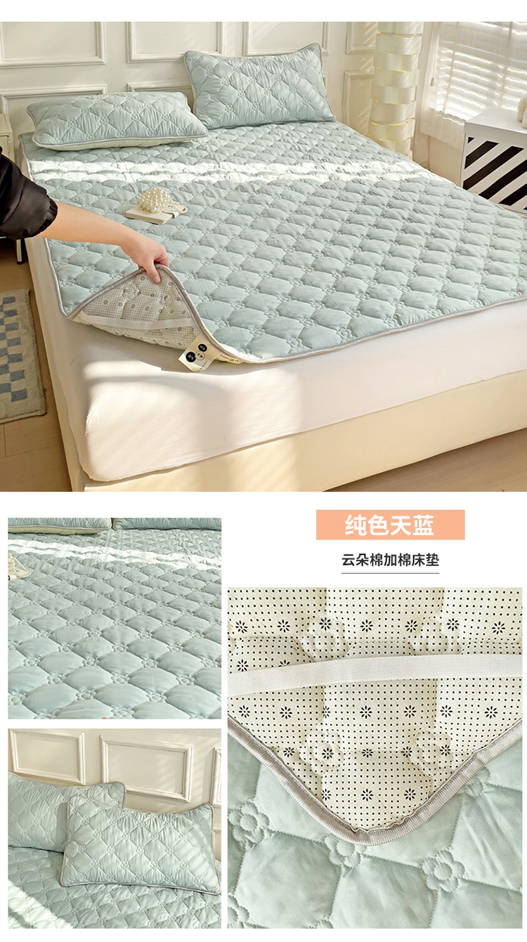 纽缦家纺 2024云朵棉加厚加棉床垫 纯色天蓝