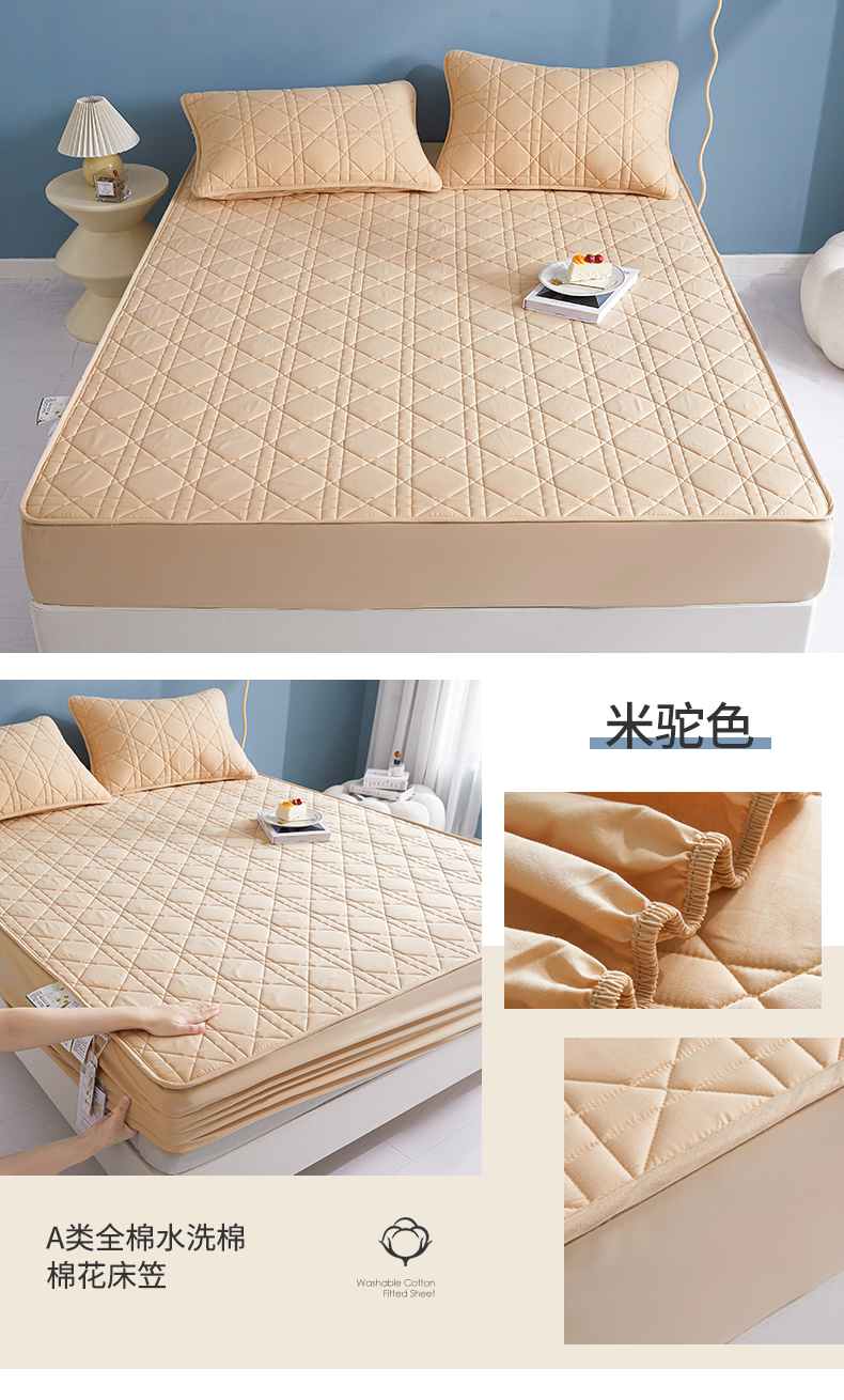 3C 2024新款全棉水洗棉棉花床笠 米驼色