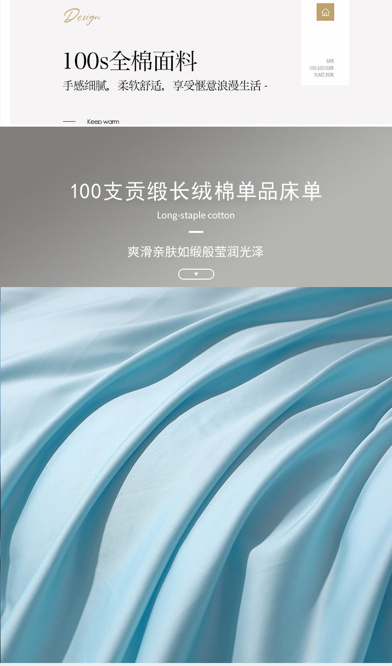 晶缦家纺 2024新款100S全棉贡缎长绒棉纯色四件套和单品-纯沐系列 单床单 纯沐-浅天蓝