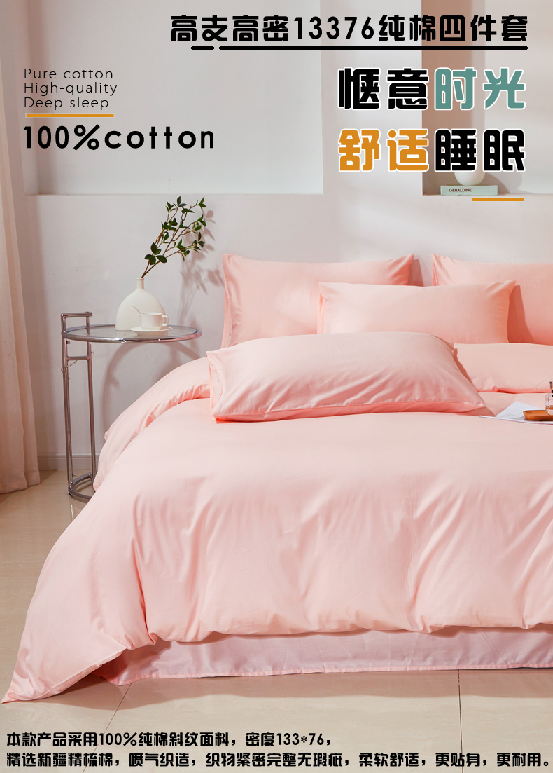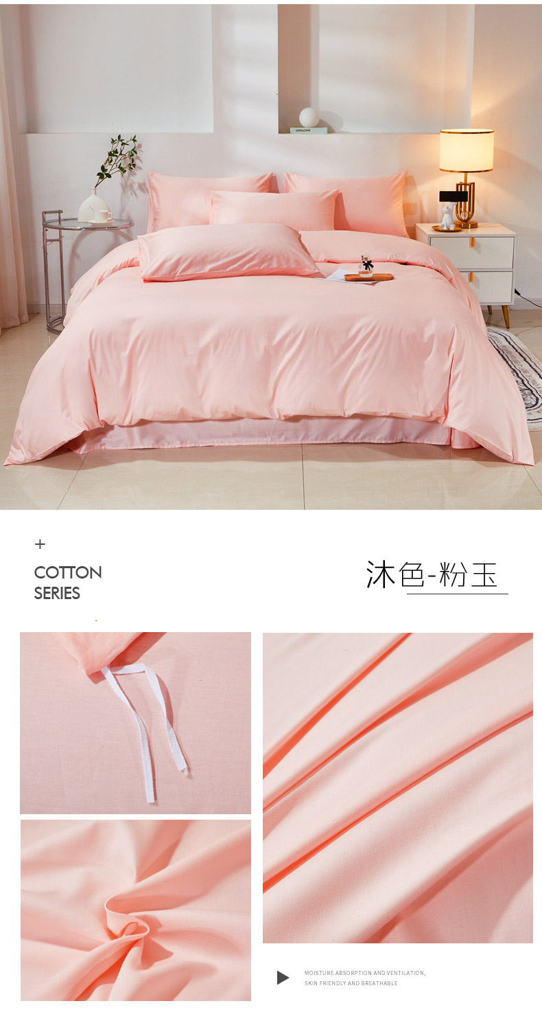 当前位置: 91家纺网 > 商品网购 > 床品套件 > 四件套 > 全棉普通四件套 > 晶缦家纺 2024新款喷气全棉13376纯棉斜纹纯色多规格四件套和单品-沐色系列 四件套 沐色-粉玉