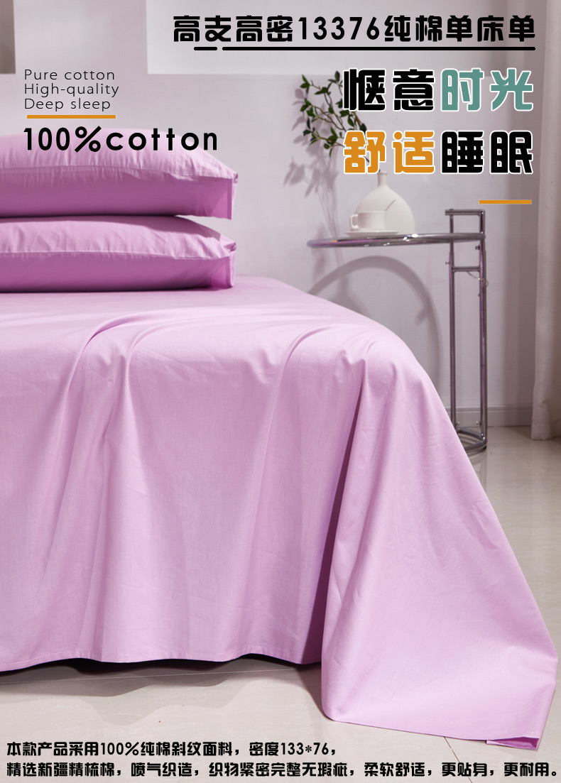 晶缦家纺 2024新款喷气全棉13376纯棉斜纹纯色多规格四件套和单品-沐色系列 单床单 沐色-浅紫