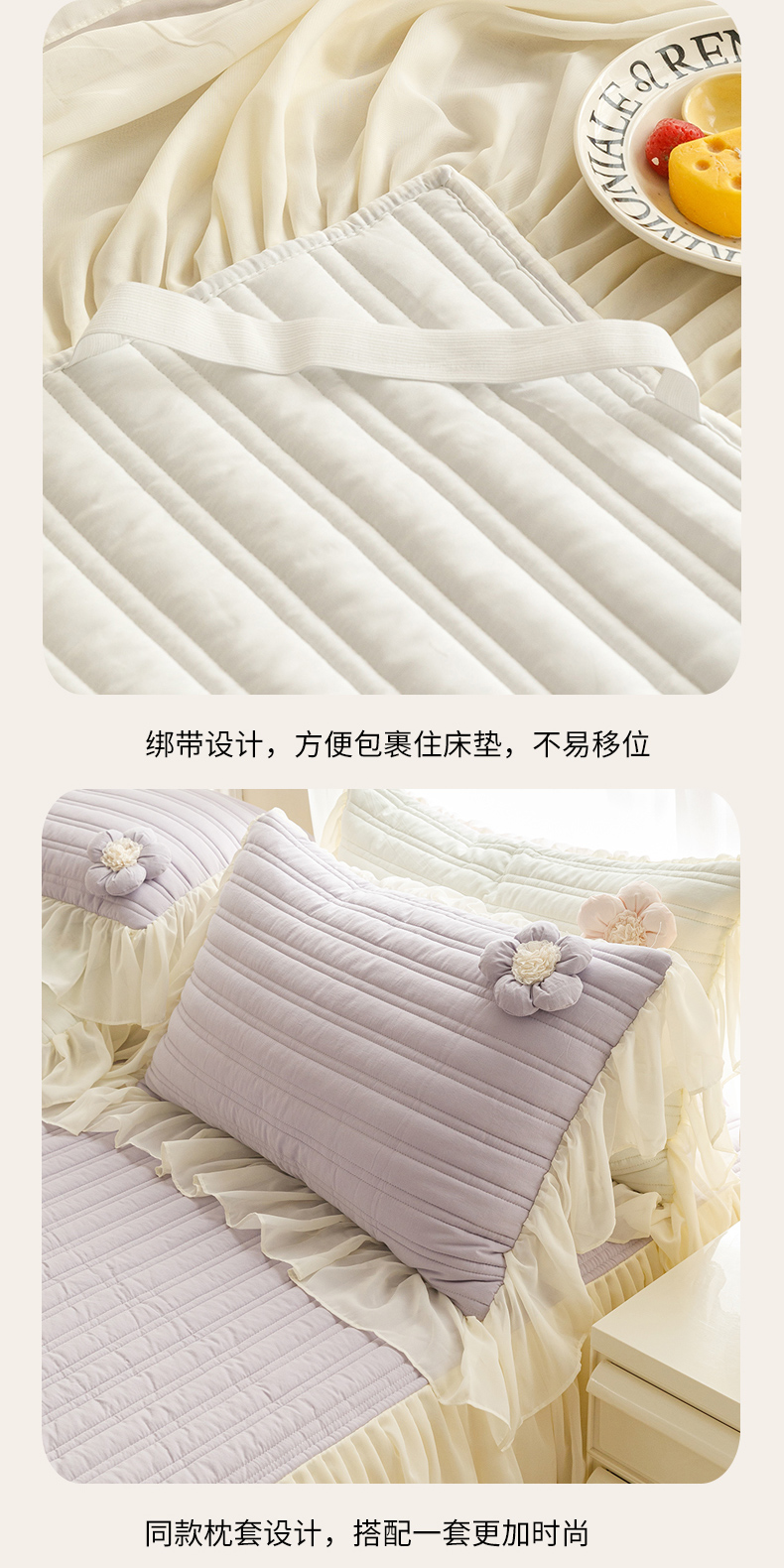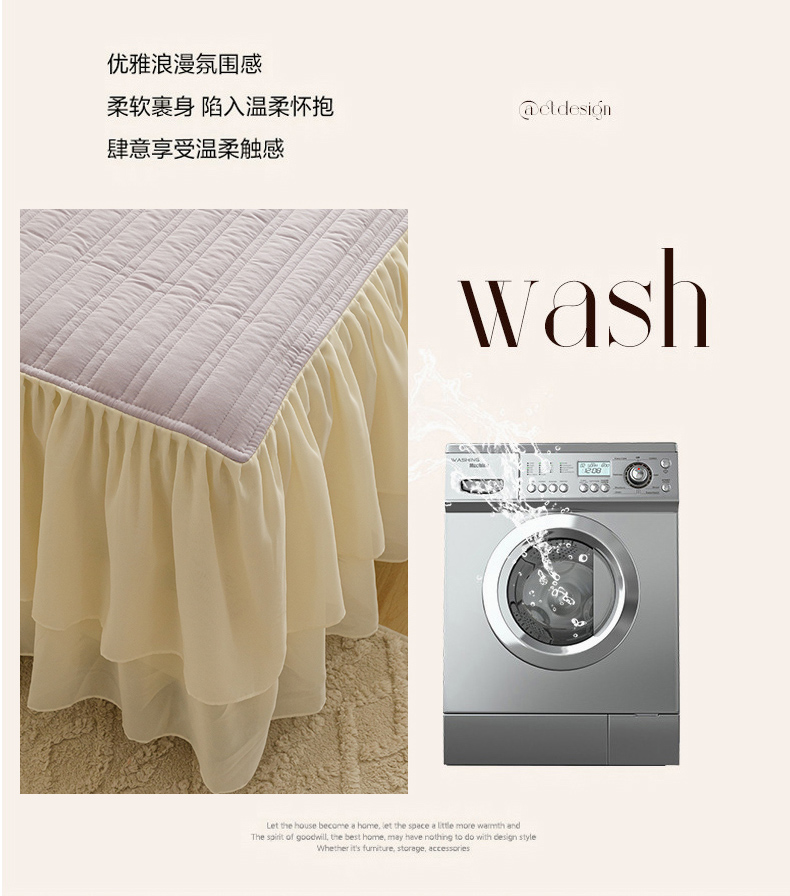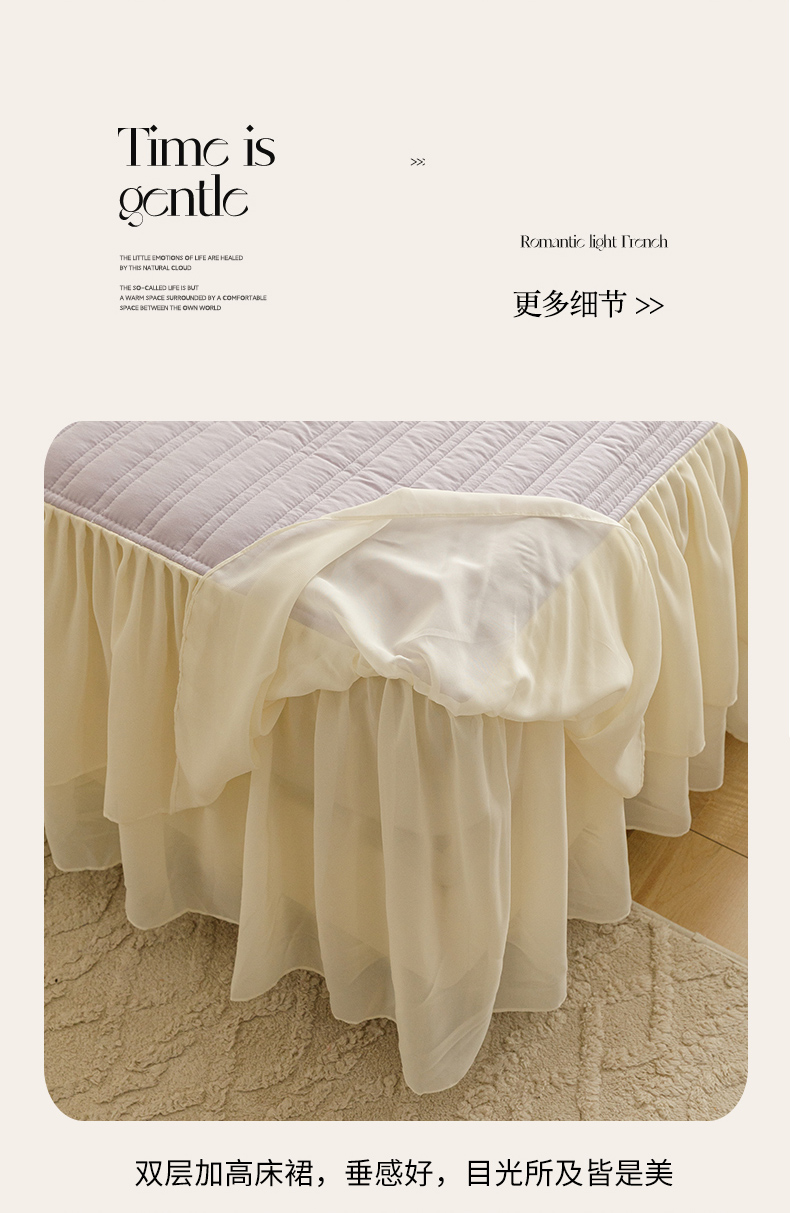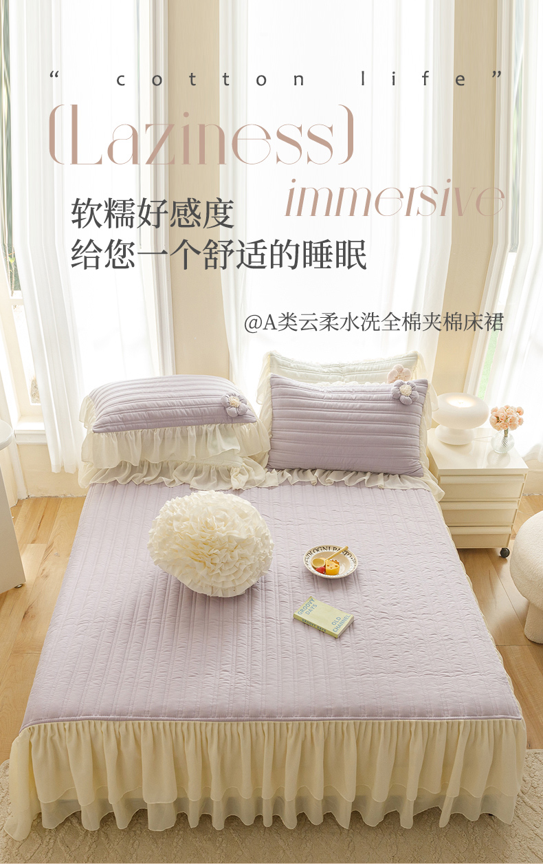 • 91家纺网 家纺一手货源 找家纺 胜权家纺 2024新款A类水洗60支全棉工艺款夹棉单床裙 花儿朵朵-凝香紫