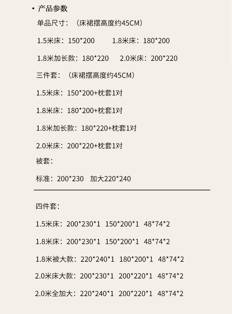 床单/床笠尺寸 6