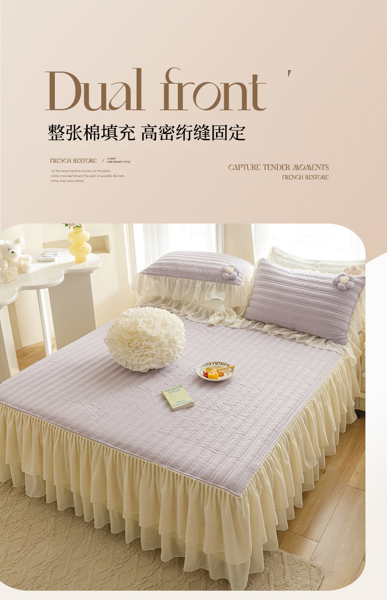 胜权家纺 2024新款A类水洗60支全棉工艺款夹棉单床裙 花儿朵朵-凝香紫