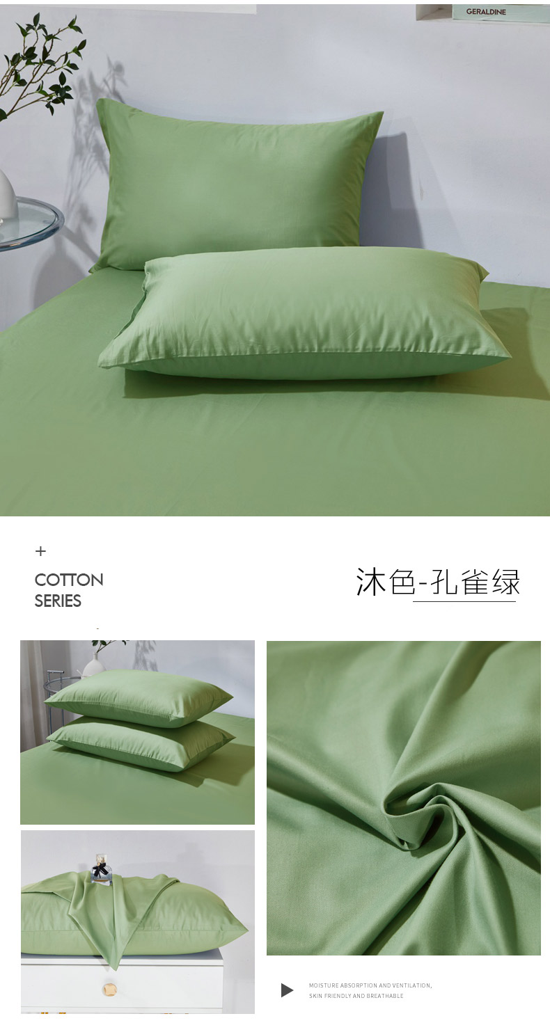 晶缦家纺 2024新款喷气全棉13376纯棉斜纹纯色多规格四件套和单品-沐色系列 单枕套 沐色-抹茶绿