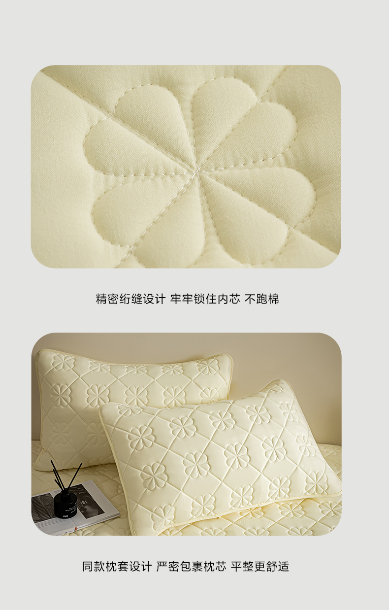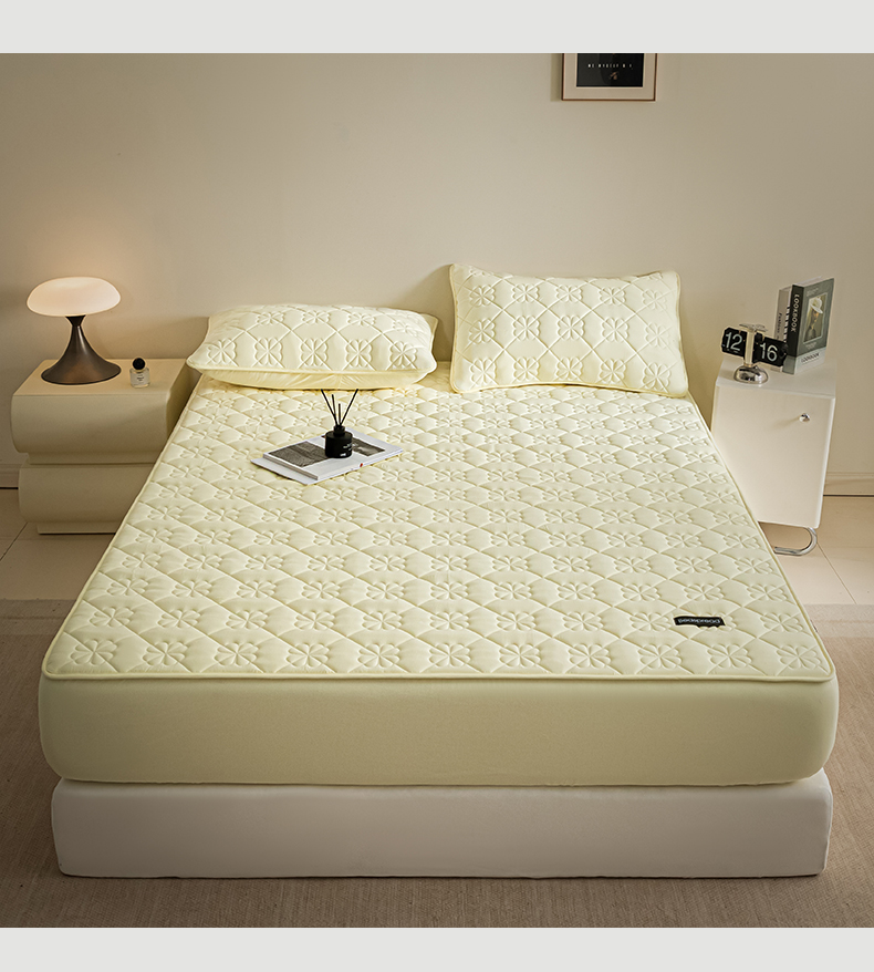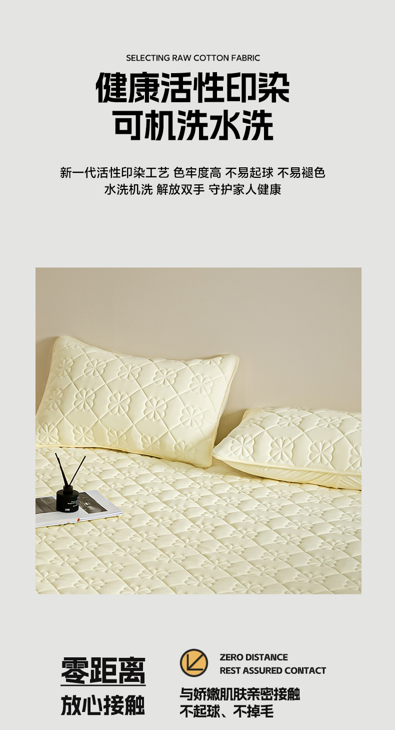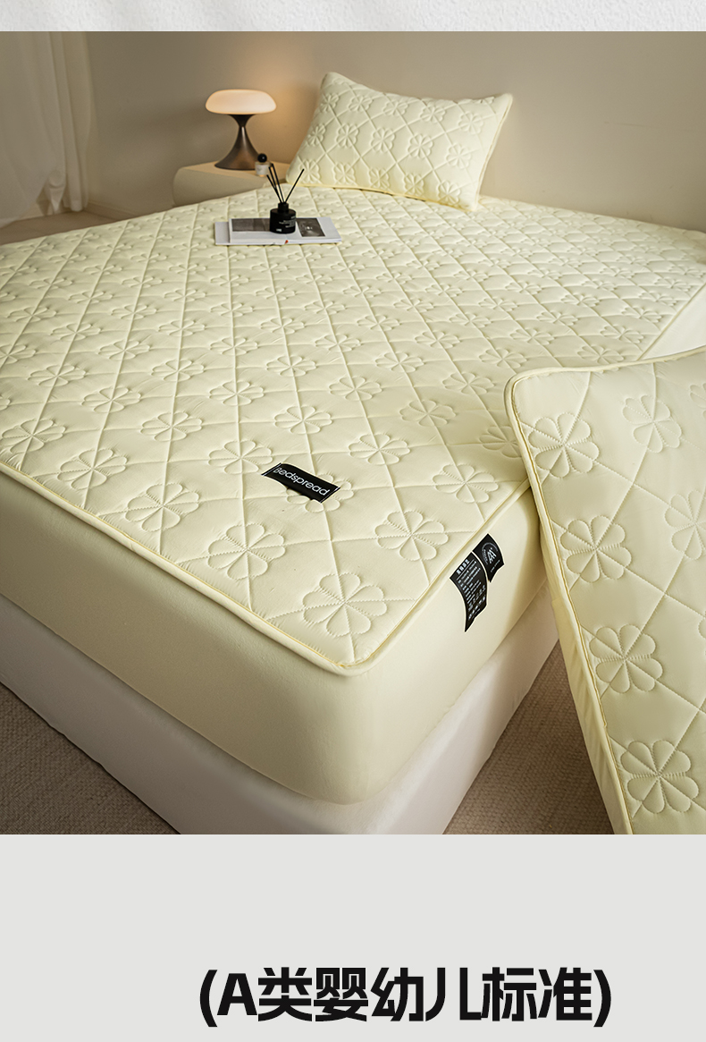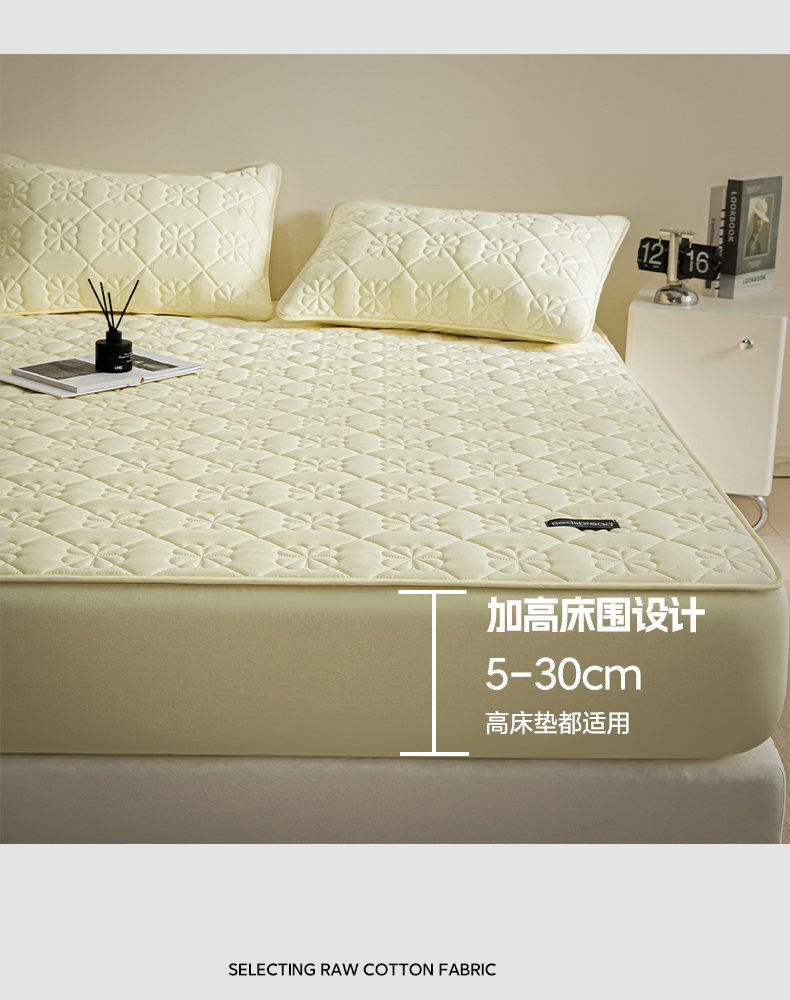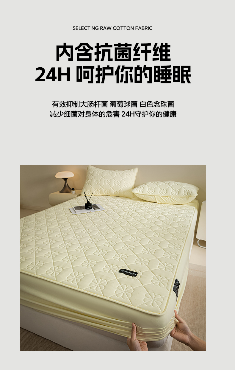 芬晴家纺 2024新款A类全棉水洗棉抗菌床笠夹棉床笠奥兰 奥兰-嫩黄