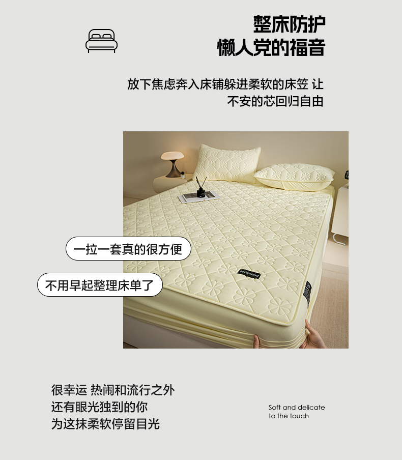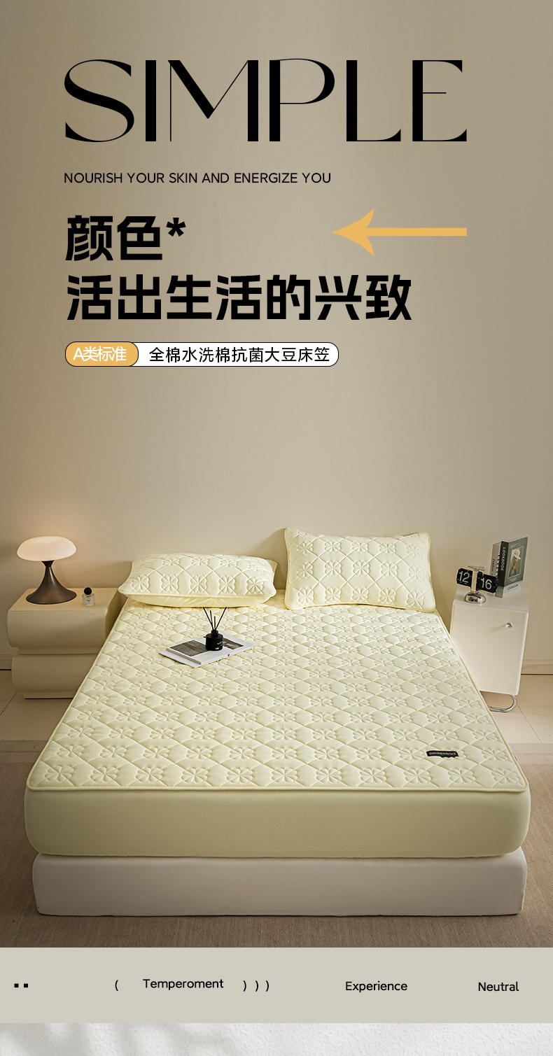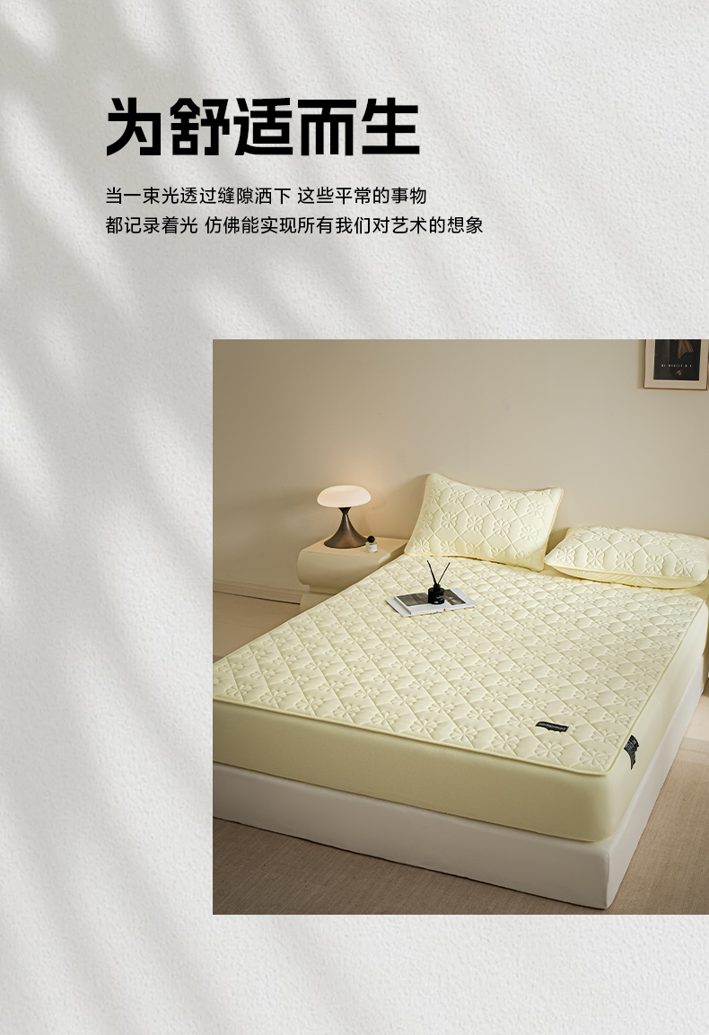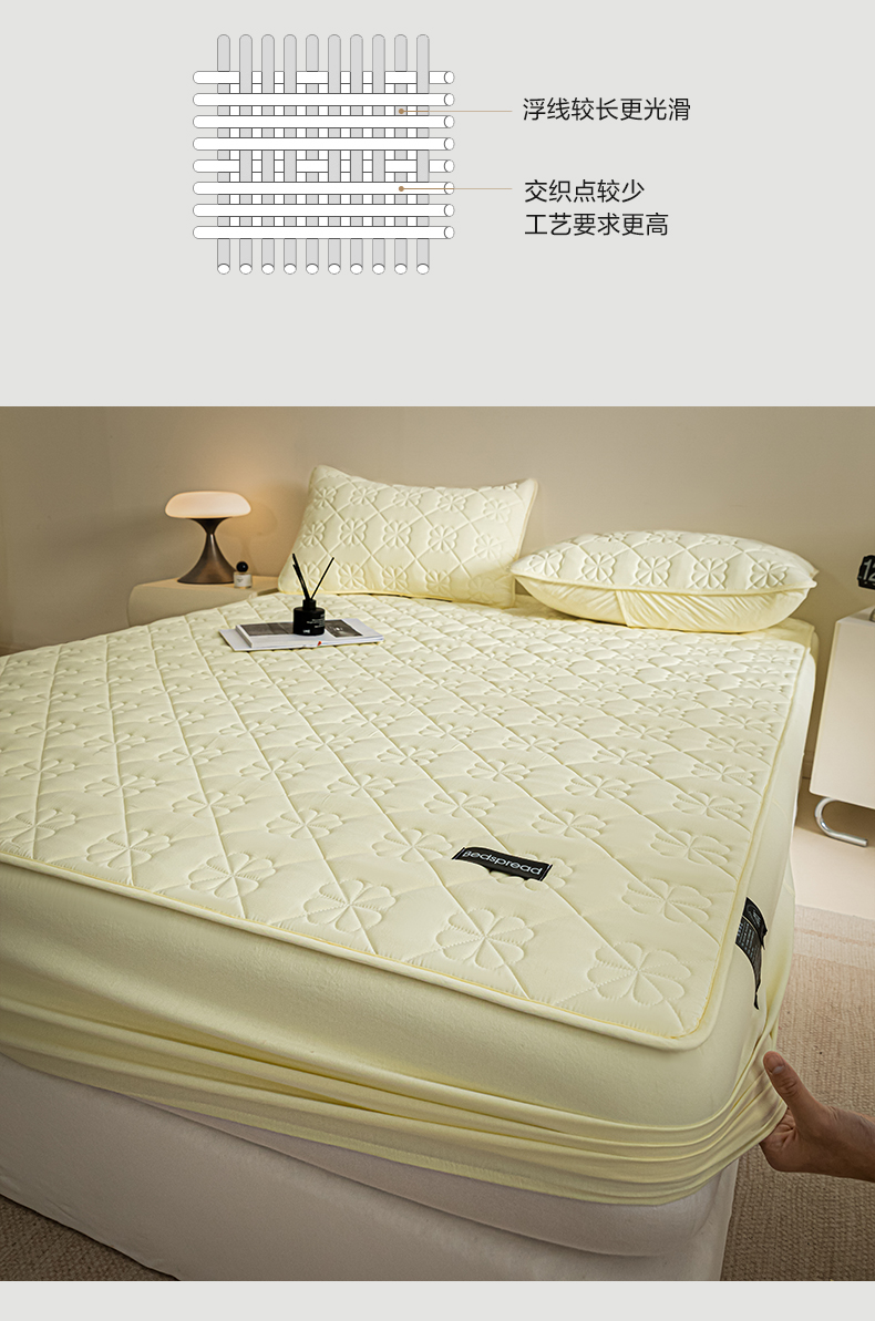 • 91家纺网 家纺一手货源 找家纺 芬晴家纺 2024新款A类全棉水洗棉抗菌床笠夹棉床笠奥兰 奥兰-嫩黄