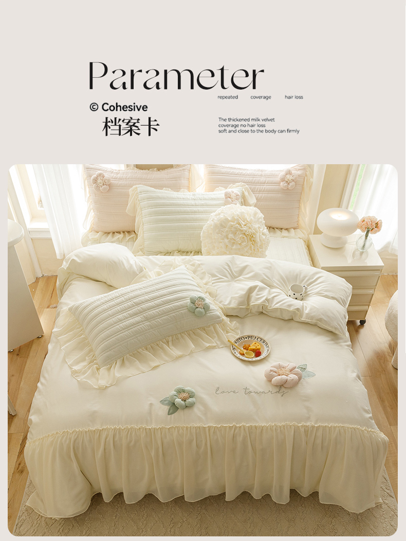 (总)胜权家纺 2024新款小香风牛奶绒夹棉床盖四件套-芭莎系列,芭莎-粉,芭莎-绿,芭莎-紫,芭莎-米