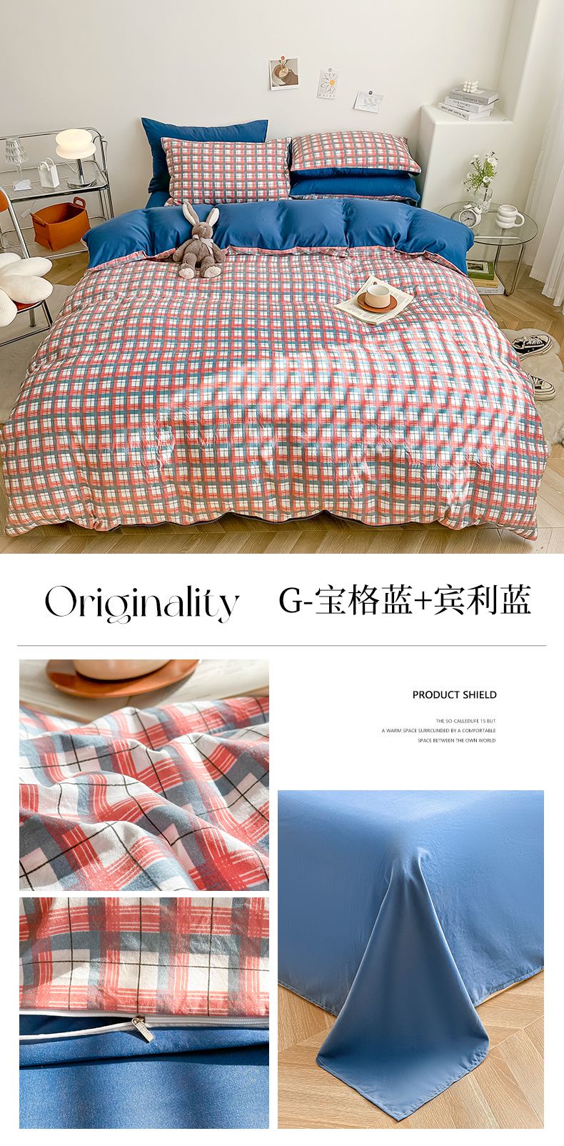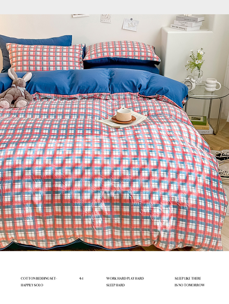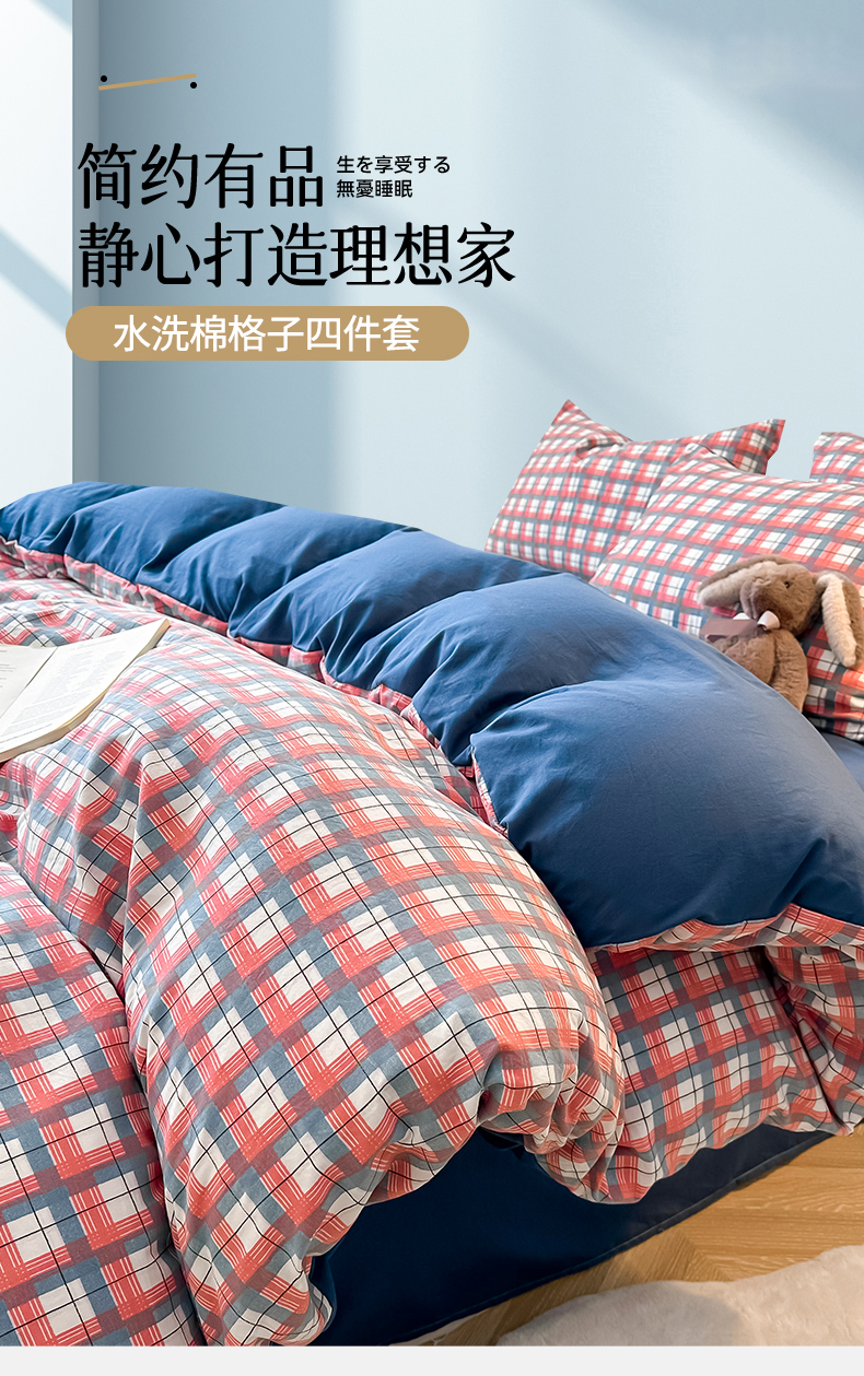 当前位置: 91家纺网 > 商品网购 > 床品套件 > 四件套 > 水洗棉四件套 > 古吉梦 2024新款水洗棉小清新印花格子系列四件套 G-宝格蓝+宾利蓝