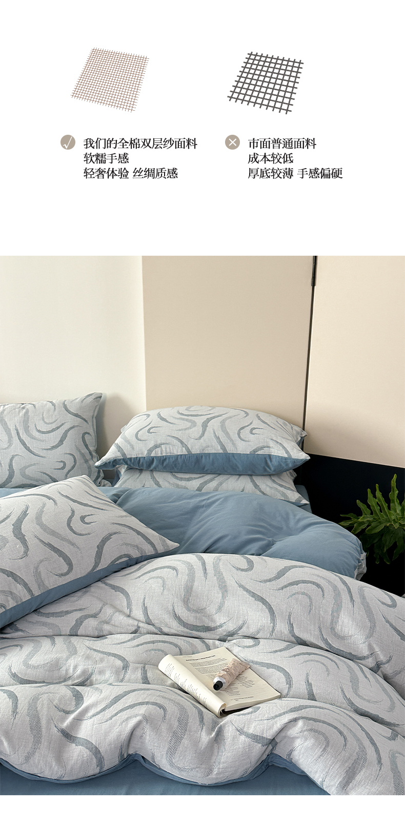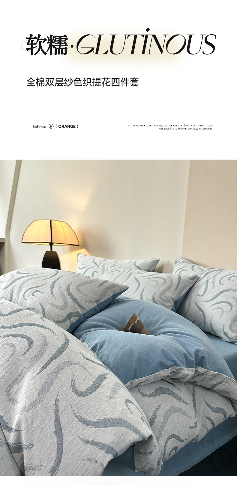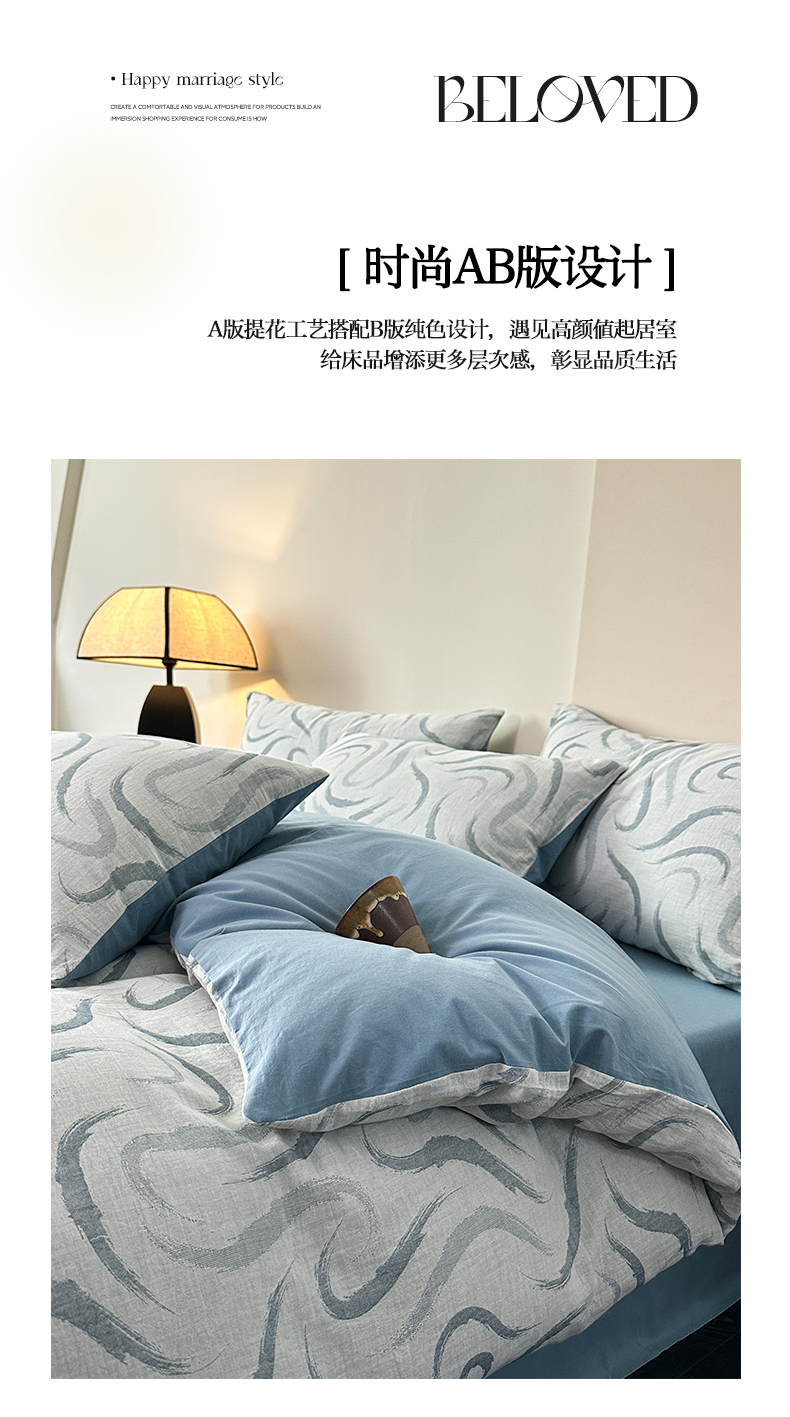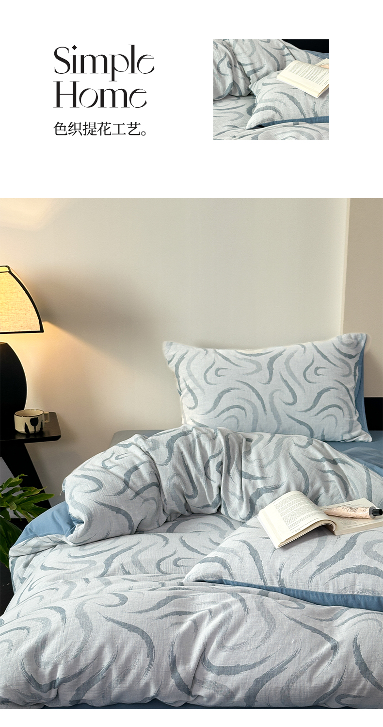 商品名称:雅居纺家纺 2024新款全棉双层纱色织提花四件套 潮流-蓝