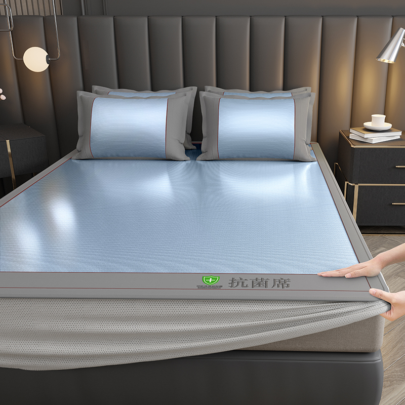当前位置: 91家纺网 > 商品网购 > 床上用品 > 凉席 > 冰丝席 > 小牛席业 2024新款加厚款可机洗抗菌提花冰丝席(床笠款) 抗菌席-色织蓝色床笠款