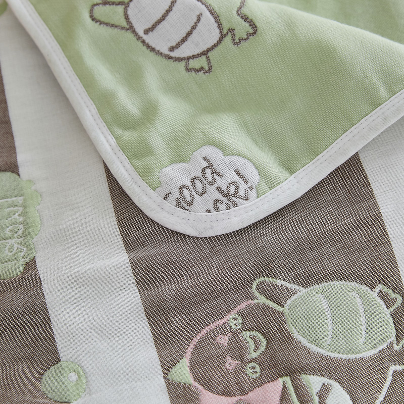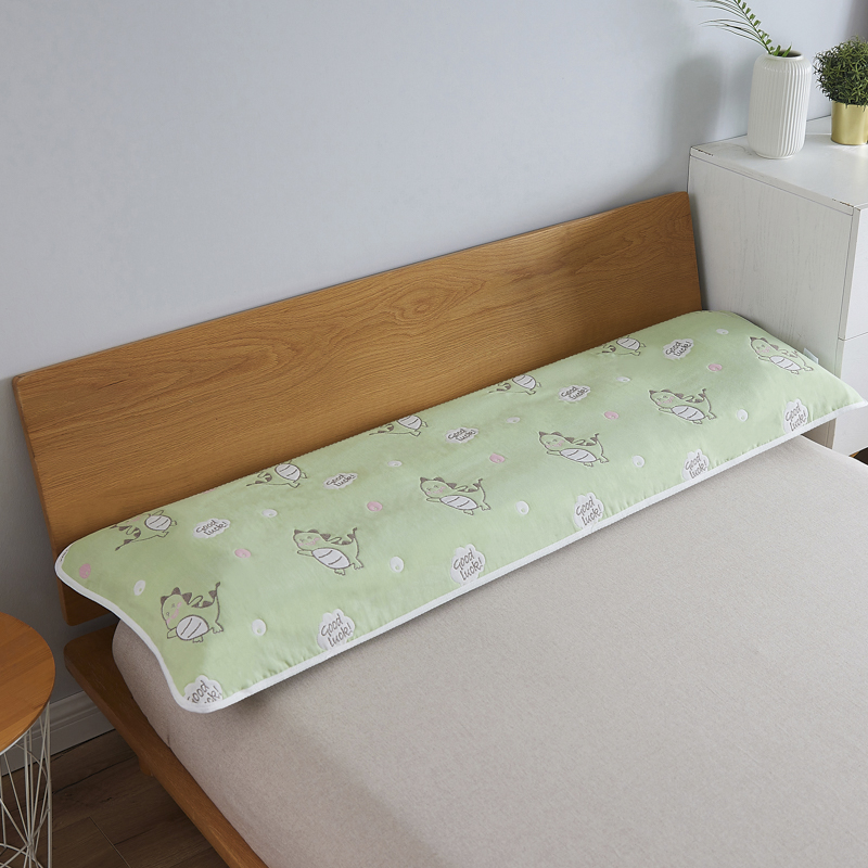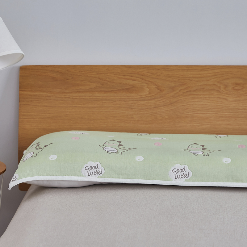爱港家纺 2024全棉A类毛巾被 纱布升级款长枕巾 情侣枕巾 枕芯保护套 绿恐龙