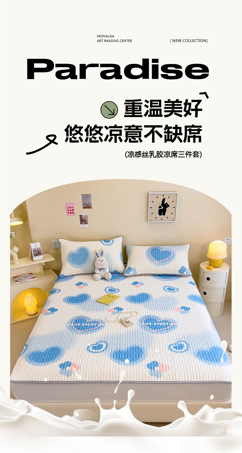 商品名称:希廷顿 2024新款加厚凉感丝乳胶凉席三件套 心相印