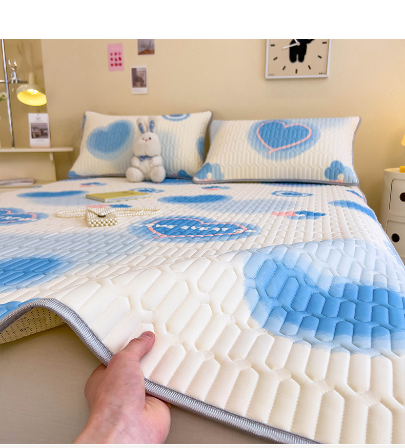 希廷顿 2024新款加厚凉感丝乳胶凉席三件套 心相印