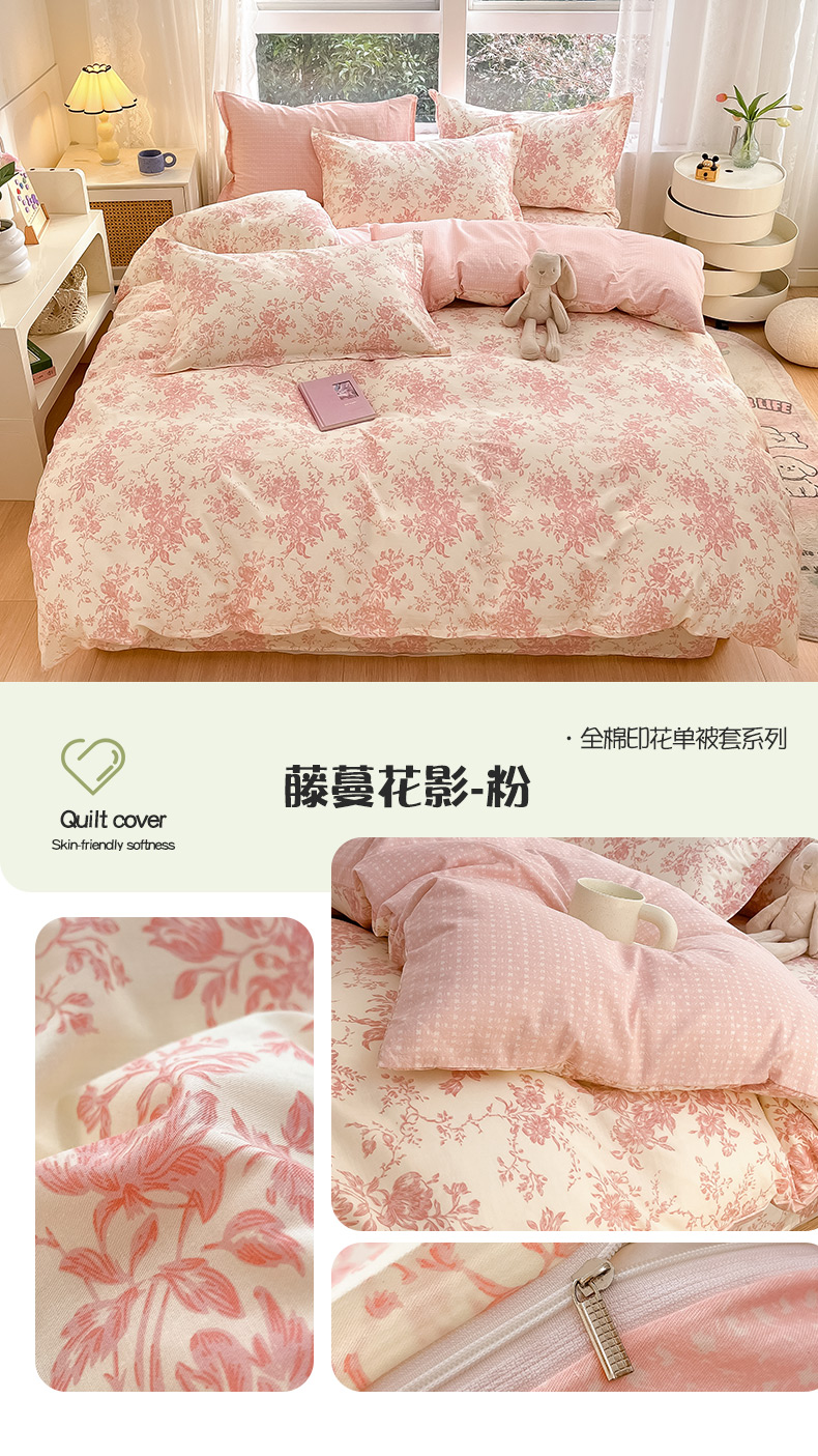 (总)绵庭家纺 2023新款12868系列全棉小清新印花四件套,半夏花语,波比兔,初晴花语,丁香兔,荷花映红,可爱小象,恐龙贝贝,梅林春晓,茉莉幻想,皮皮兔,清风絮语,森林狂欢,香草之恋,雅卉,玉芙蓉 豆沙