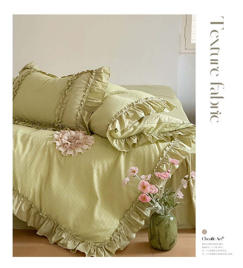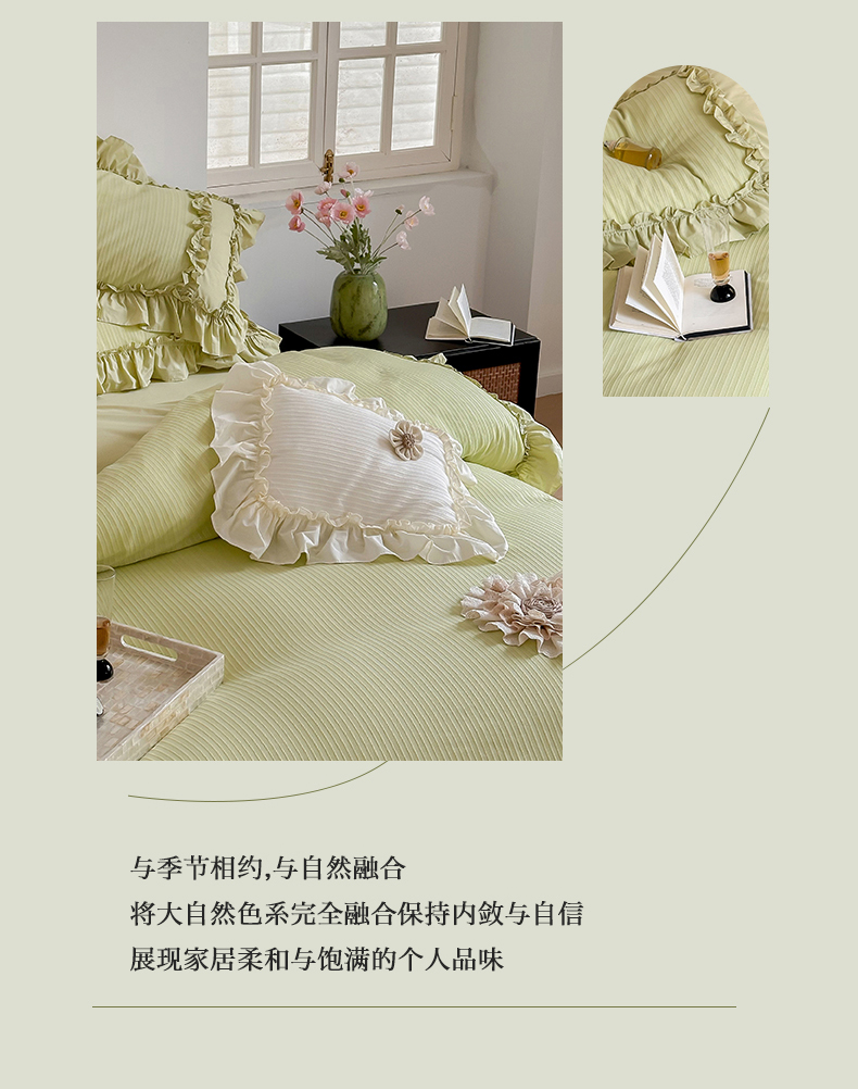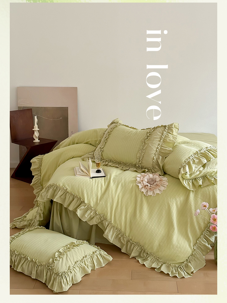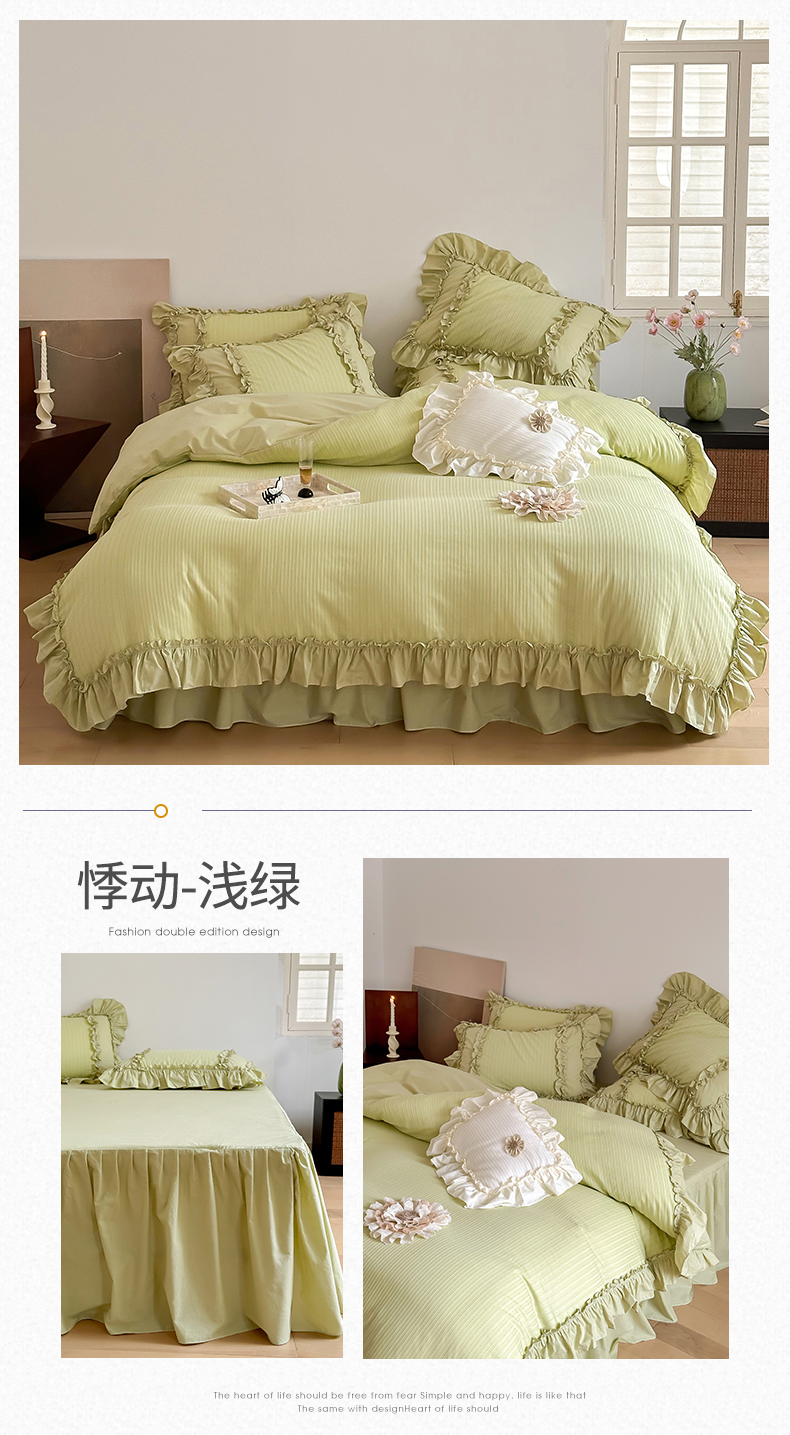 婳庭家居 2024新款全棉水洗棉提花四件套-心动系列 心动-嫩绿