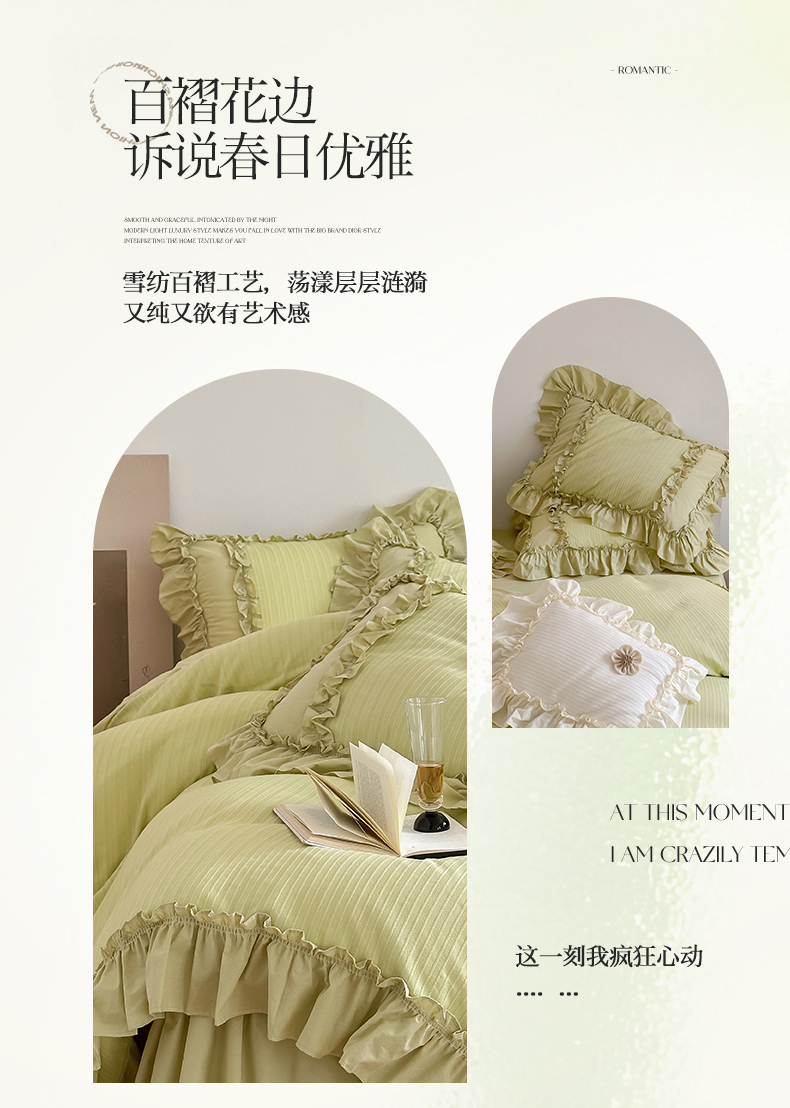 (总)婳庭家居 2025新款双层纱褶皱花边款四件套,春野来信,繁梦,玫瑰故事,清秋,云上,紫萱