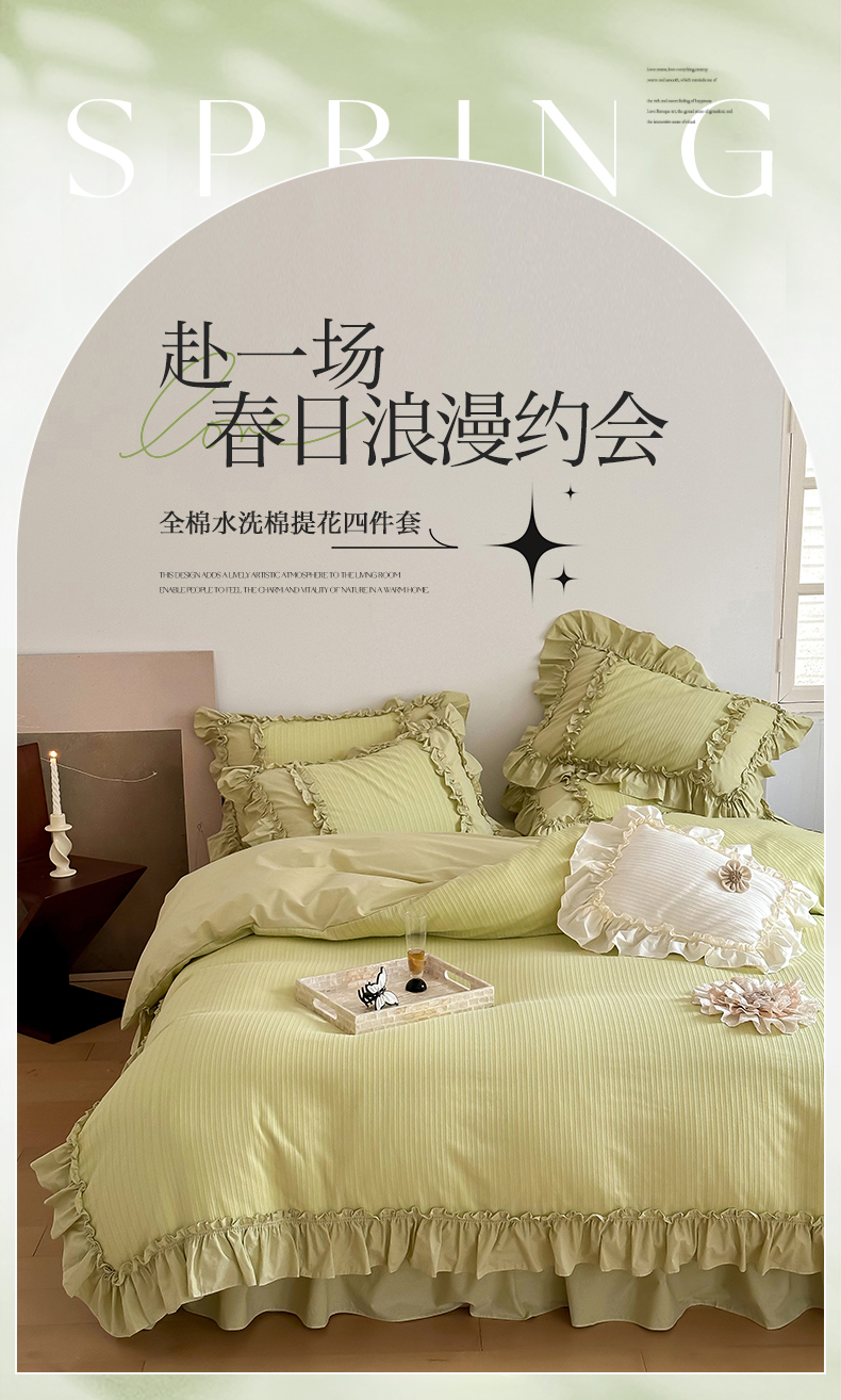 商品名称:婳庭家居 2024新款全棉水洗棉提花四件套-心动系列 心动-嫩绿