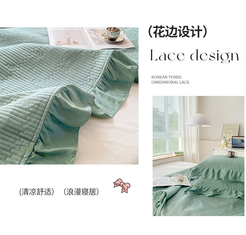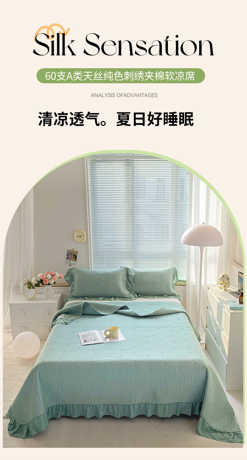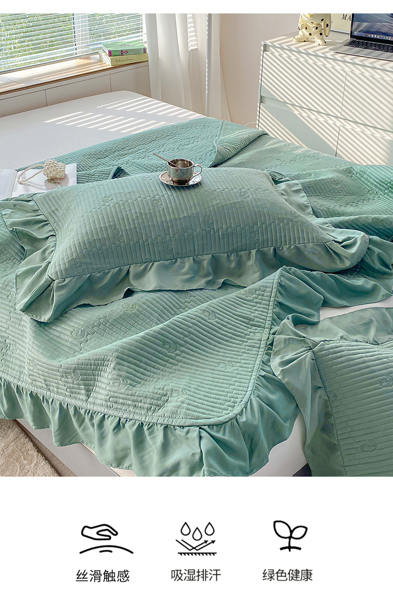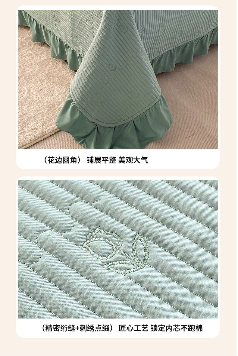 商品名称:胜权家纺 2024新款A类60S天丝夹棉绣花床盖三件套 静待花开--浅豆绿