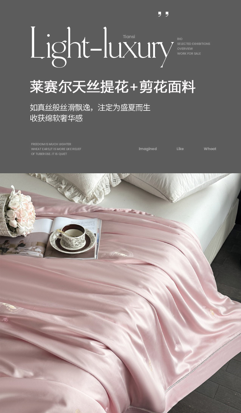 商品名称:雅高 2024新款100%桑蚕丝莱赛尔提花蚕丝夏被空调被被子被芯 奢华粉