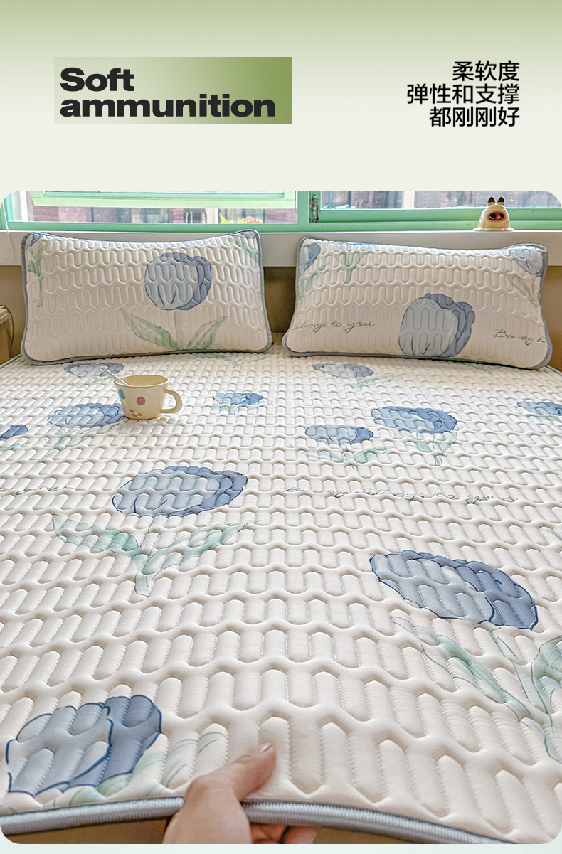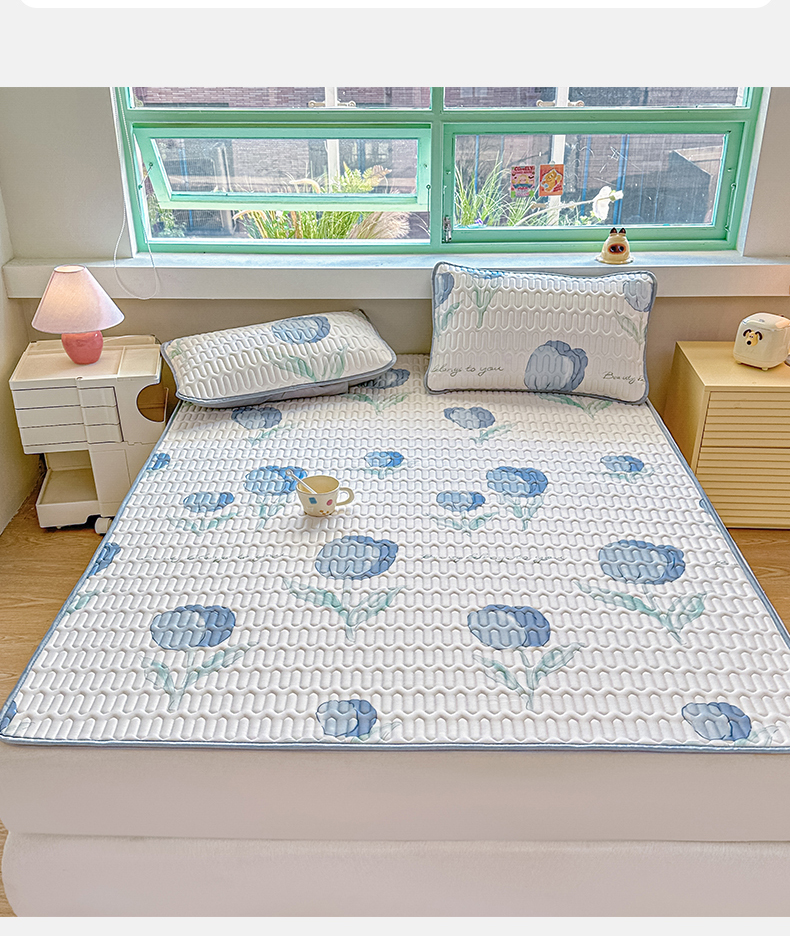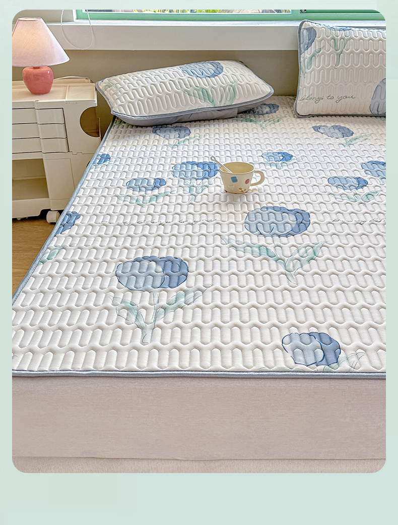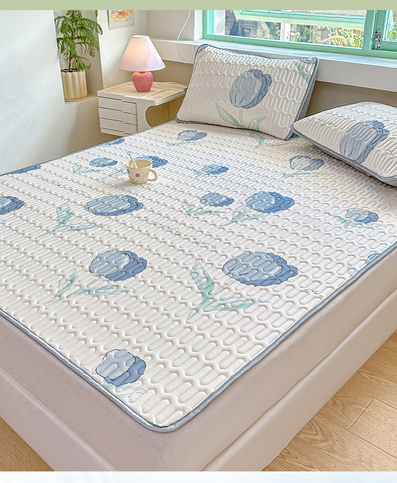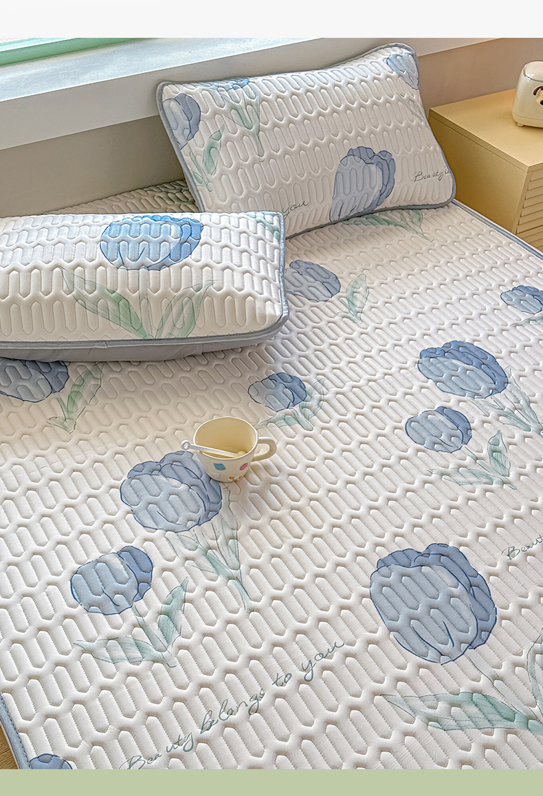 商品名称:布卢姆床垫 2025新款A类凉感丝数码印花小版乳胶凉席5mm 郁金香-蓝