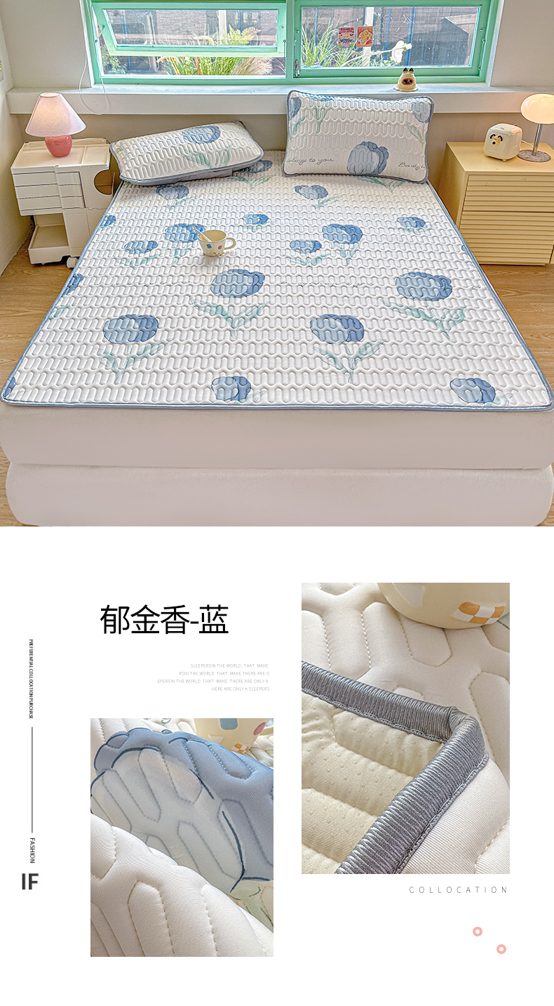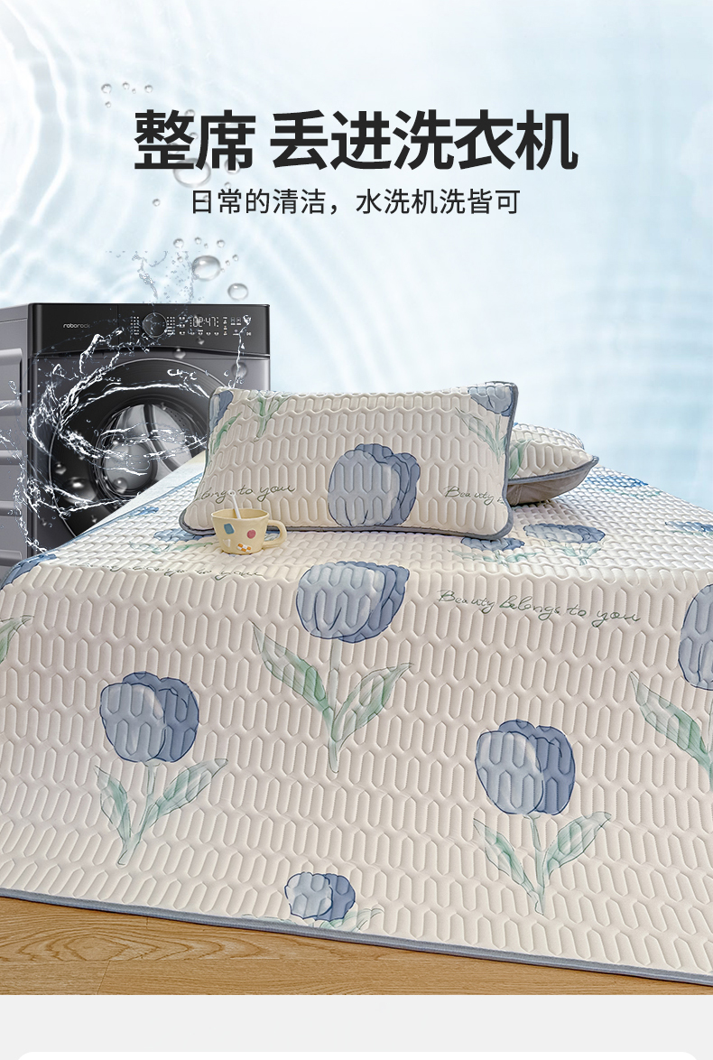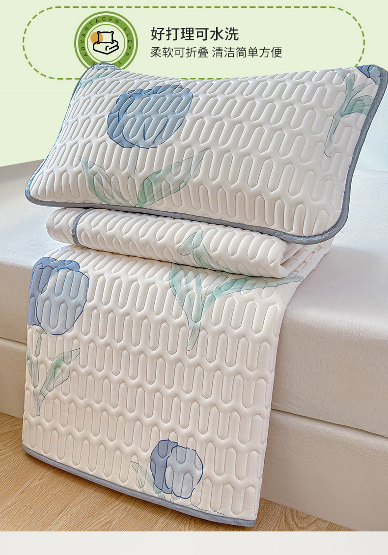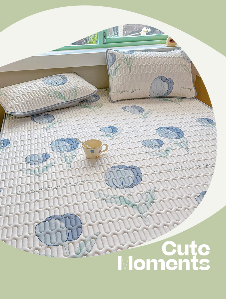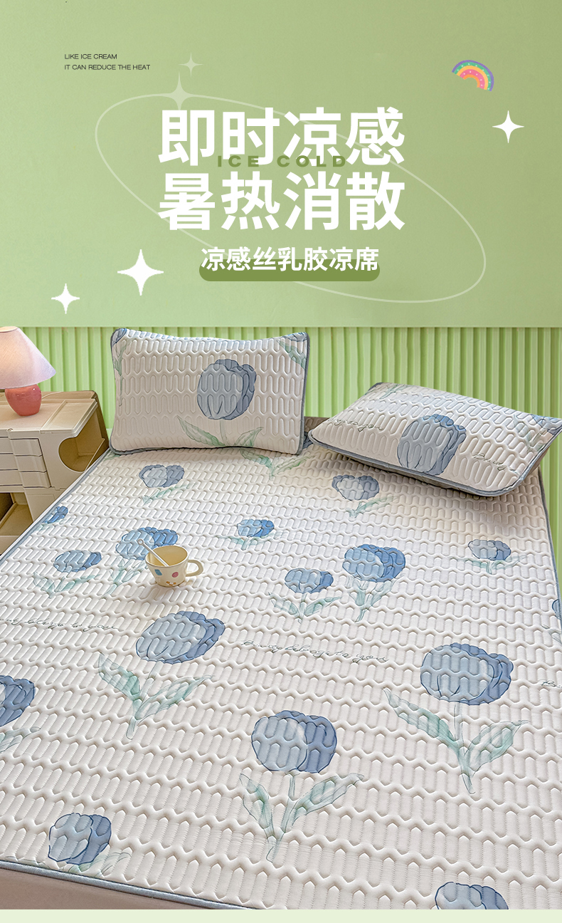 商品名称:布卢姆床垫 2025新款A类凉感丝数码印花小版乳胶凉席5mm 郁金香-蓝
