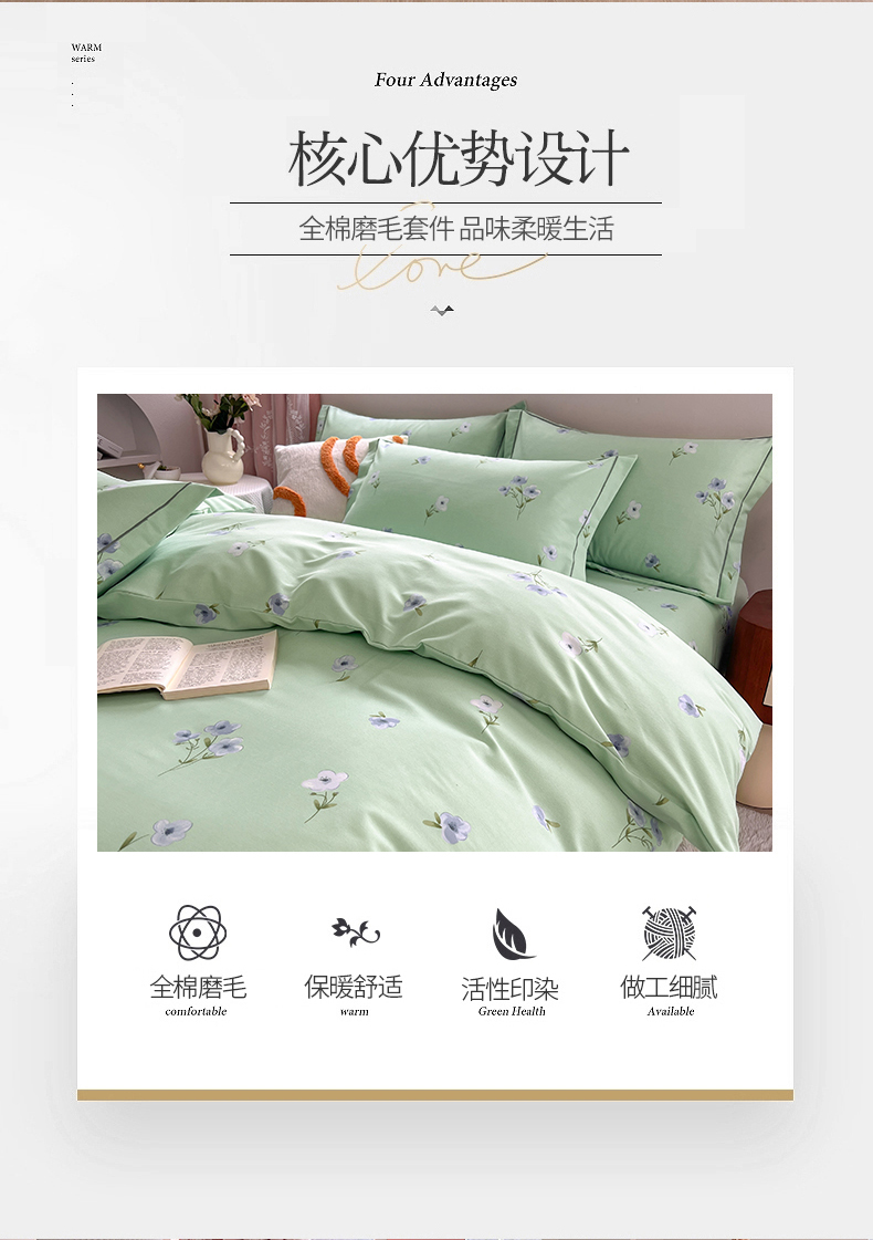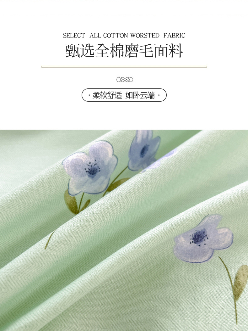 当前位置: 91家纺网 > 商品网购 > 床品套件 > 四件套 > 简约 2025新款全棉四件套活性生态磨毛四件套 风铃花香-绿