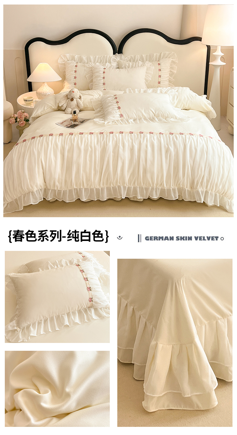 商品名称:芭比蔓家纺 2024新款雪纺磨毛四件套-春色系列 春色系列-纯白色