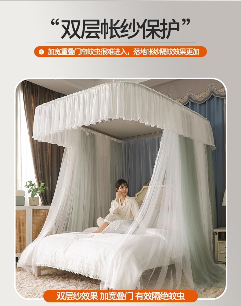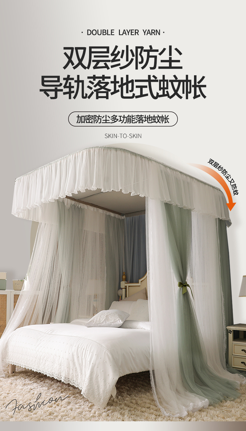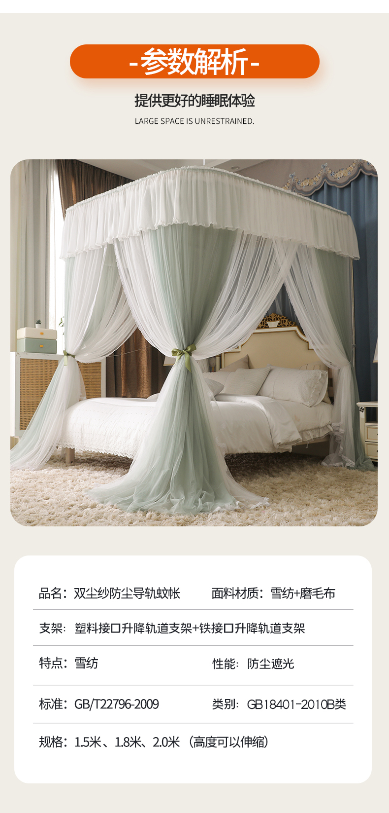 当前位置: 91家纺网 > 商品网购 > 床上用品 > 蚊帐 > 导轨蚊帐 > 夏彩 2024新款88561双层防蚊纱雪纺轨道蚊帐 88561-抹茶绿
