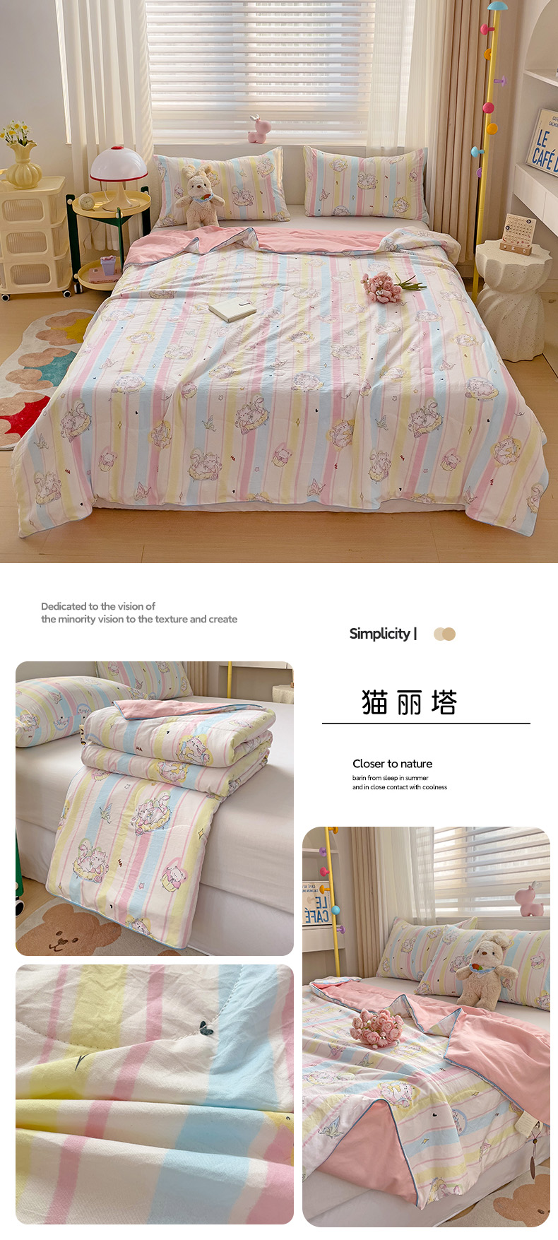 商品名称:海岛哥哥 2024新款水洗双层纱超柔单夏被嵌绳款 猫丽塔