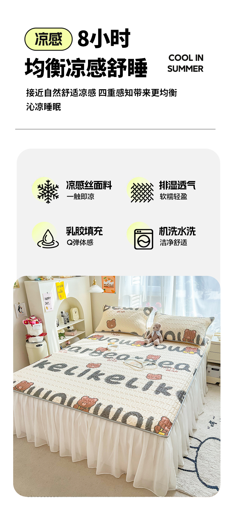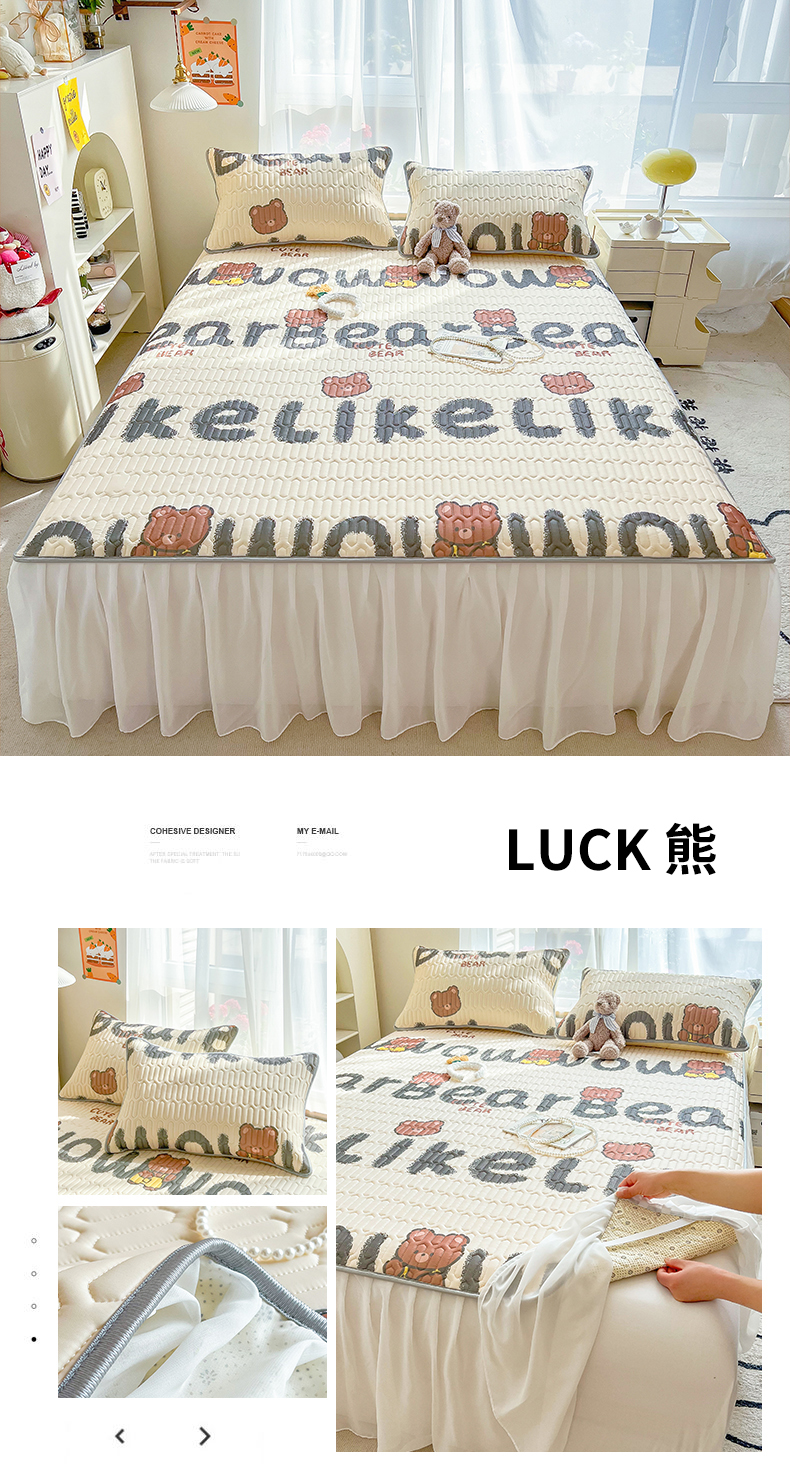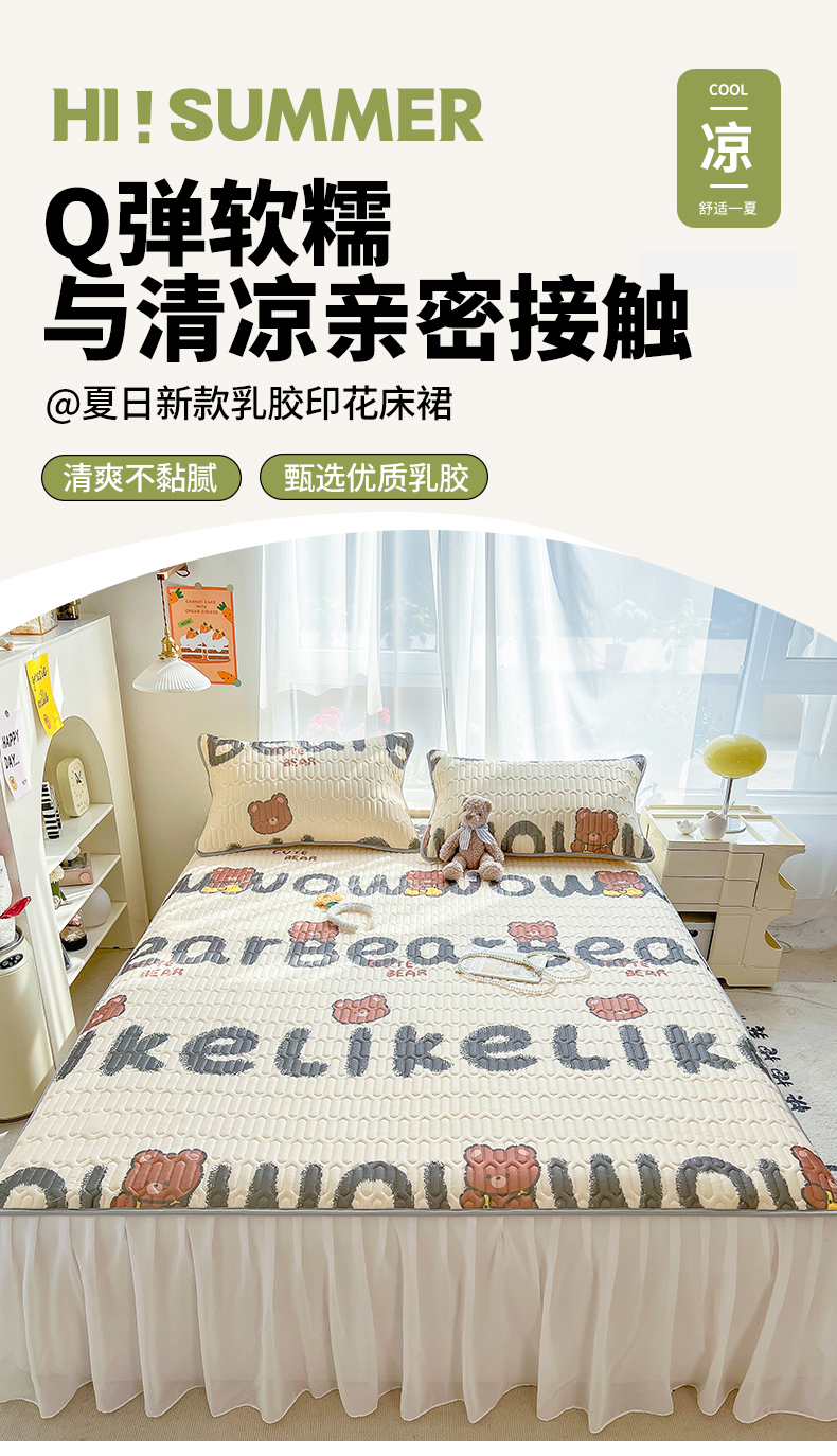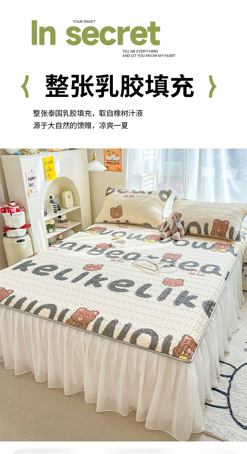 (总)希廷顿 2024新款乳胶凉席印花床裙款,Luck熊,云之恋,可爱熊,向阳花,墨绿色,天蓝色,小煤球,幸运星,心相印,深蓝色,熊猫攀竹,粉玉色,绅士灰,绽放玫瑰,草莓熊,萝卜兔,香芋紫