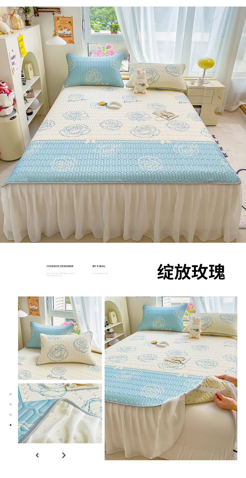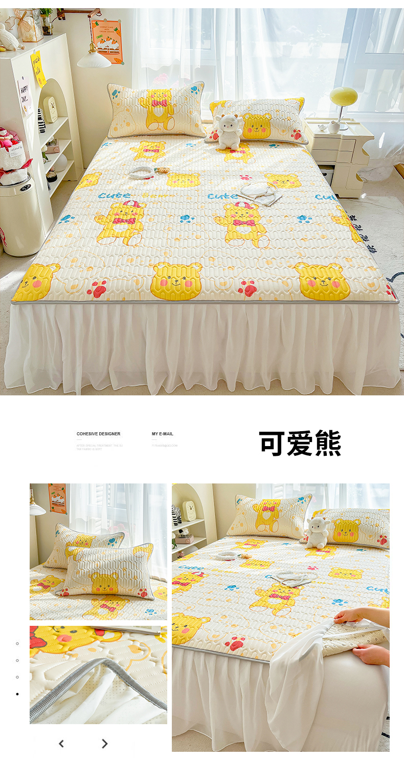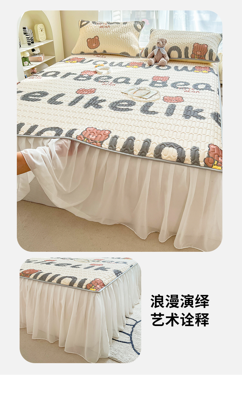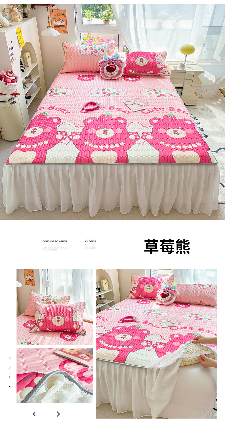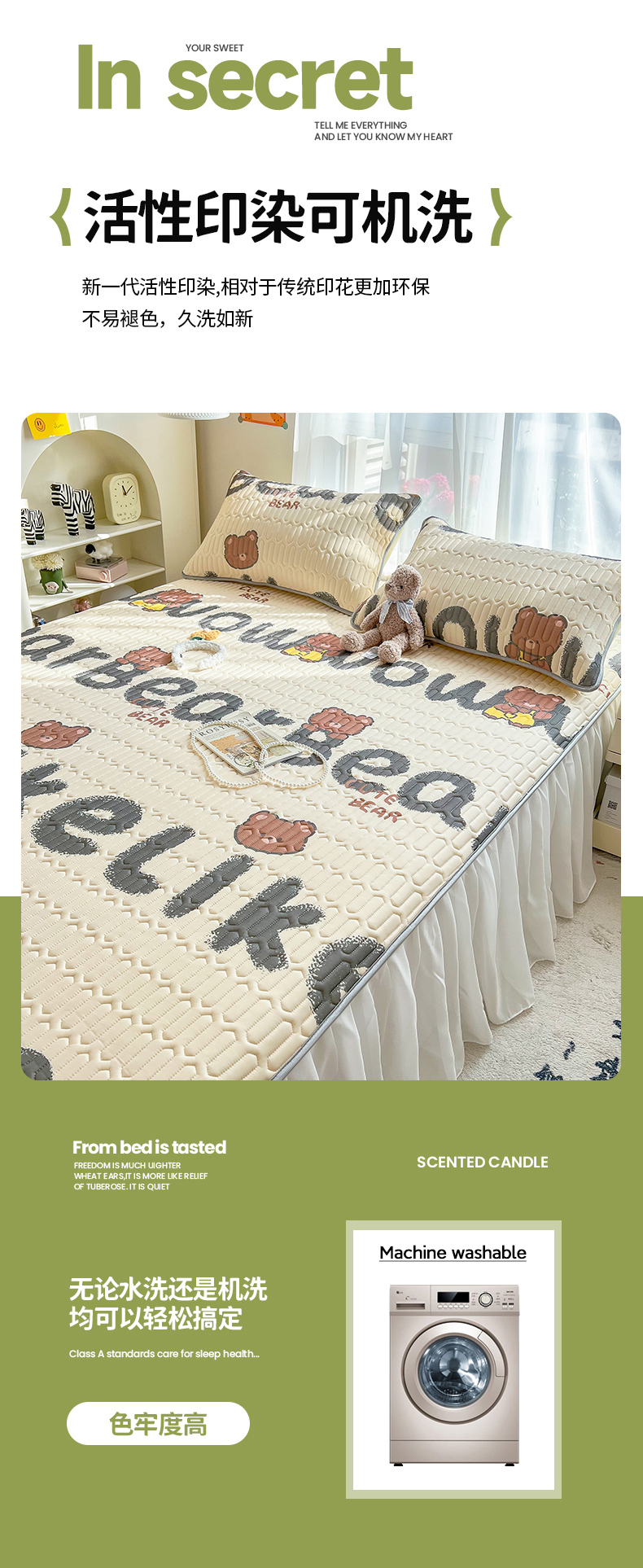 (总)希廷顿 2024新款乳胶凉席印花床裙款,Luck熊,云之恋,可爱熊,向阳花,墨绿色,天蓝色,小煤球,幸运星,心相印,深蓝色,熊猫攀竹,粉玉色,绅士灰,绽放玫瑰,草莓熊,萝卜兔,香芋紫