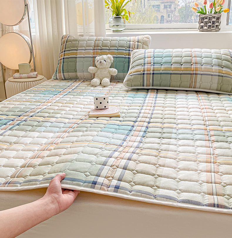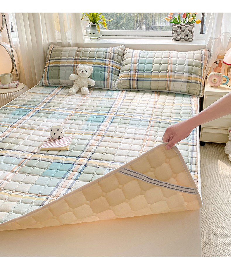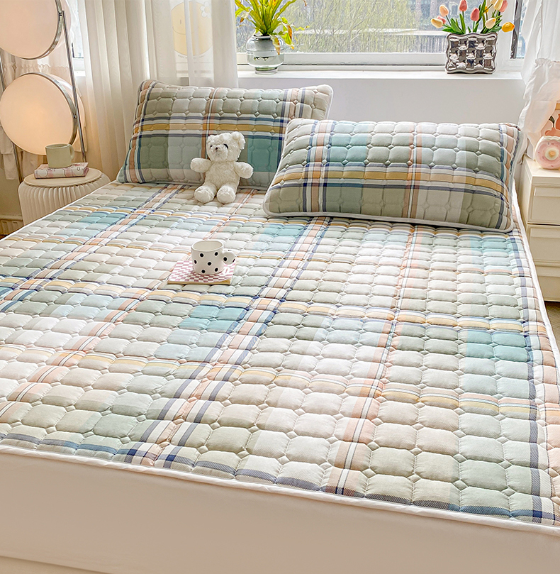 (总)萌飞 2025新款A类全棉纯棉色织抗菌夹棉床笠单床笠单品床笠单件床笠同款枕套一对,高级灰,灰小格,卡其色,蓝小格,莫妮卡-粉,莫妮卡-蓝,奶油白,少女粉