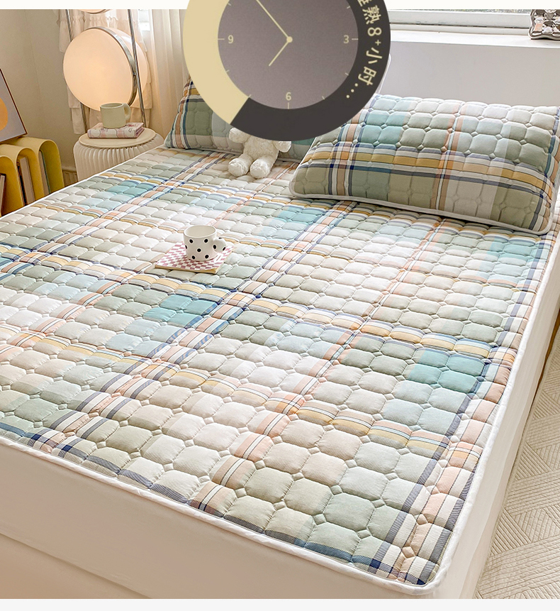 • 91家纺网 家纺一手货源 找家纺 萌飞2024新款全棉新疆棉花夹棉床垫加厚床褥垫被三件套印花 卡卢奥-绿