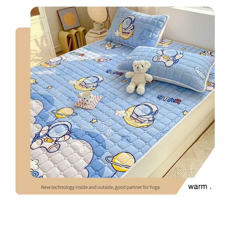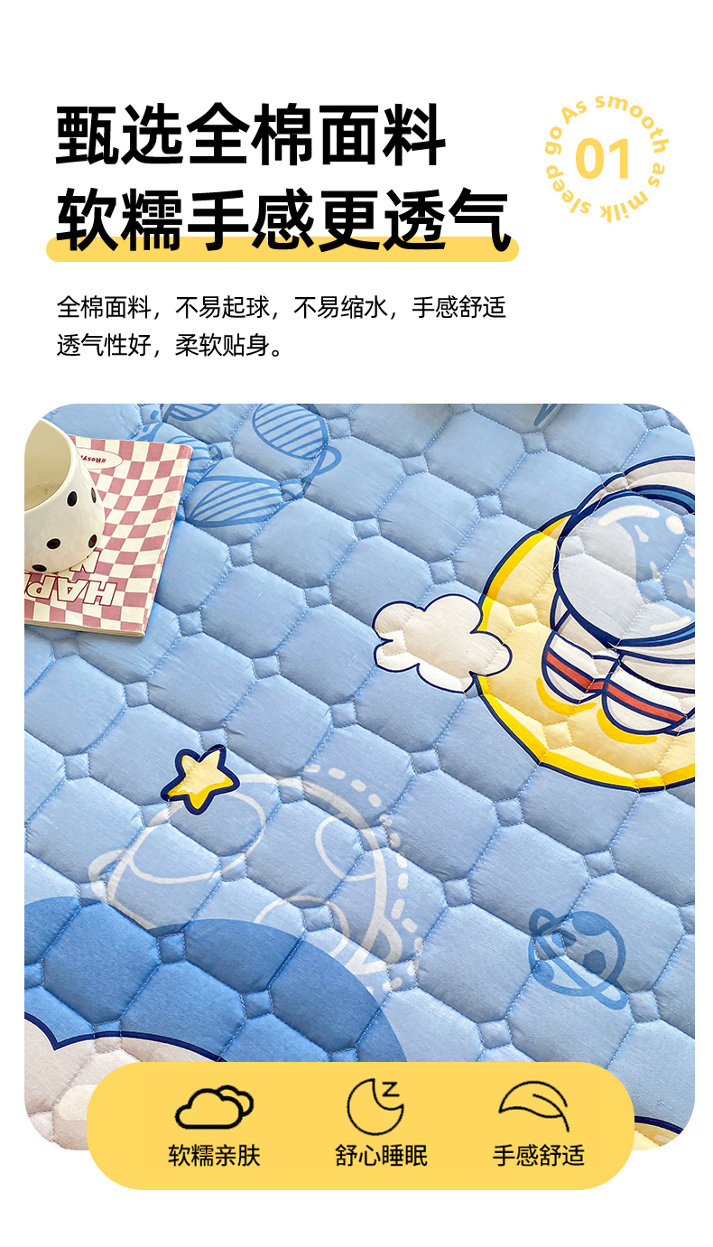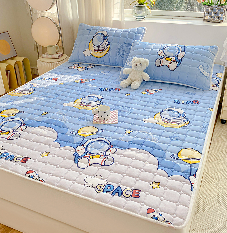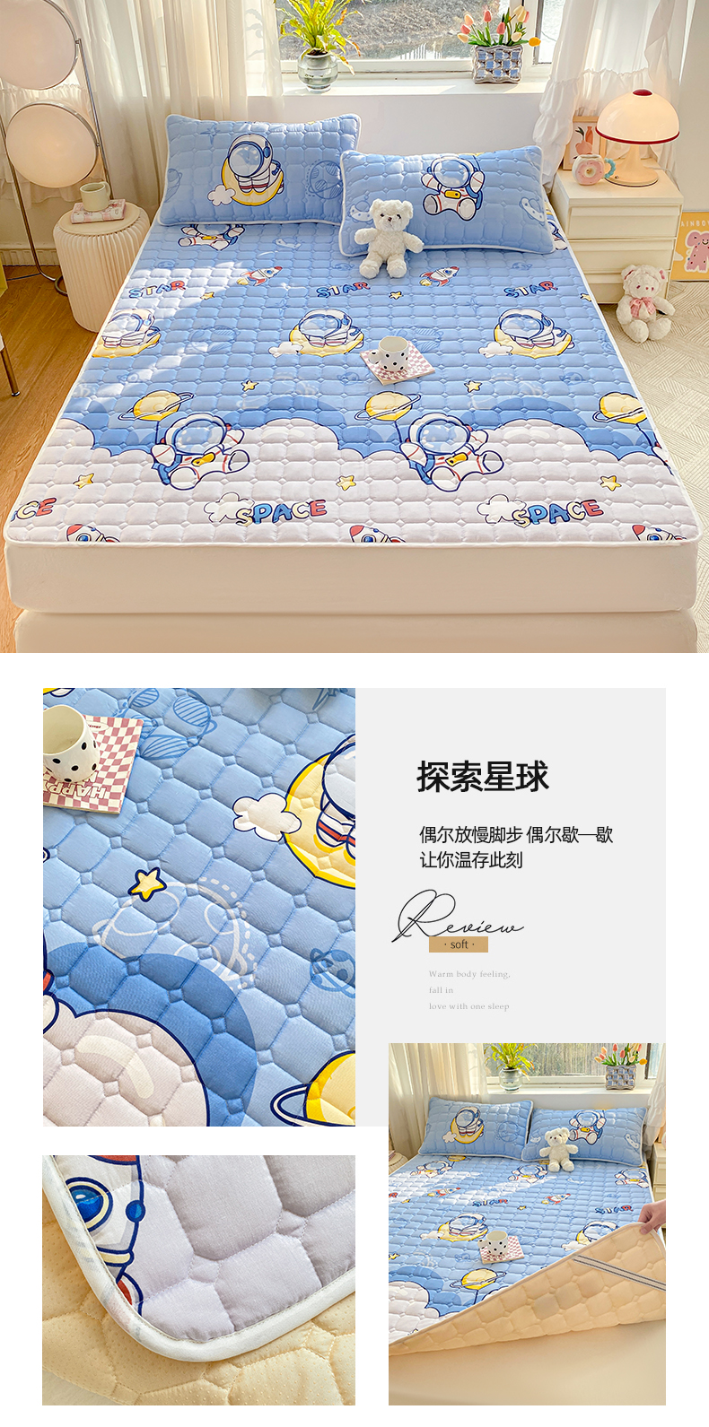 • 91家纺网 家纺一手货源 找家纺 萌飞2024新款全棉新疆棉花夹棉床垫加厚床褥垫被三件套印花 探索星球