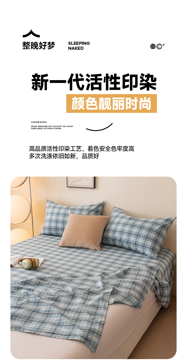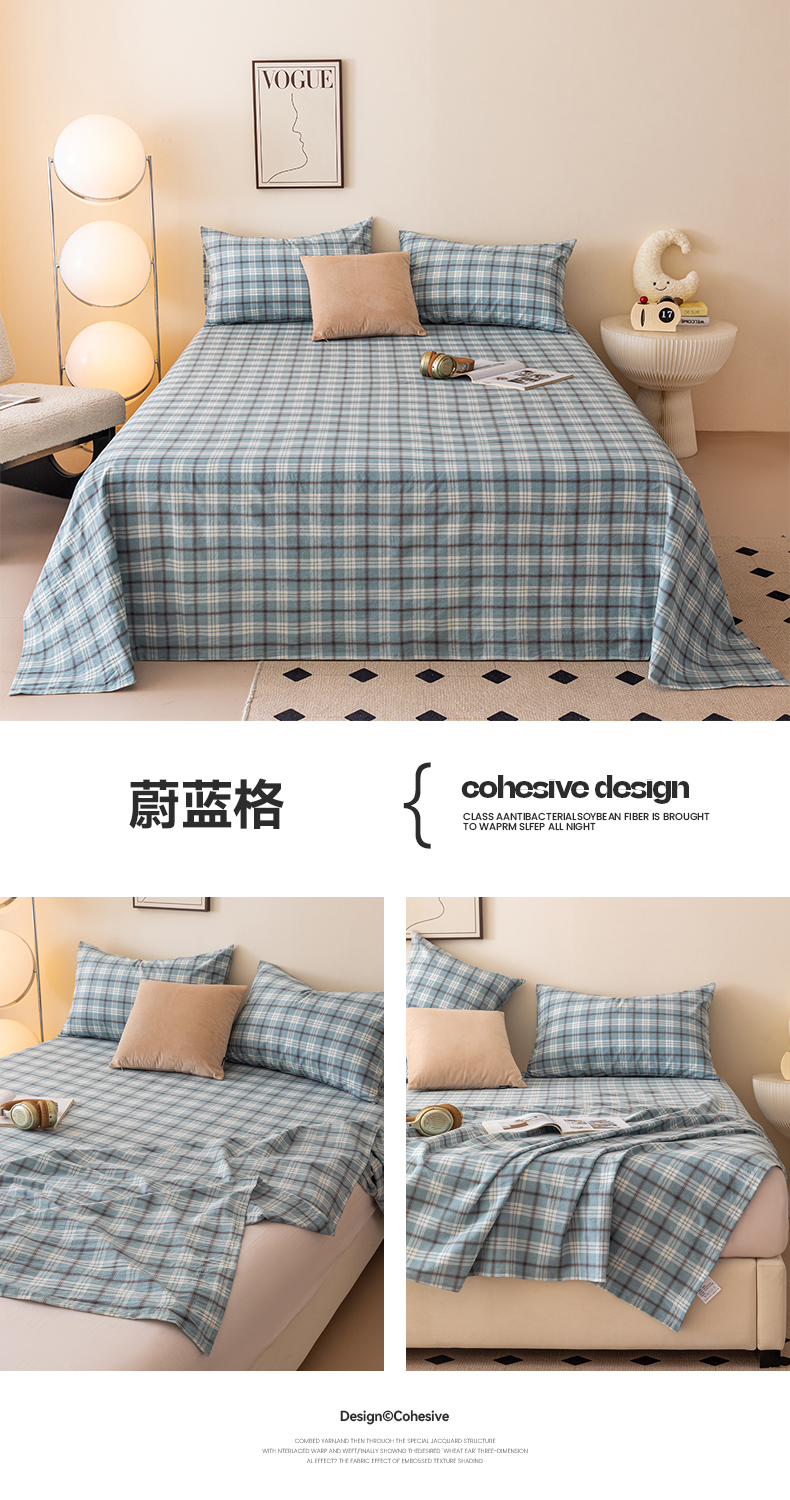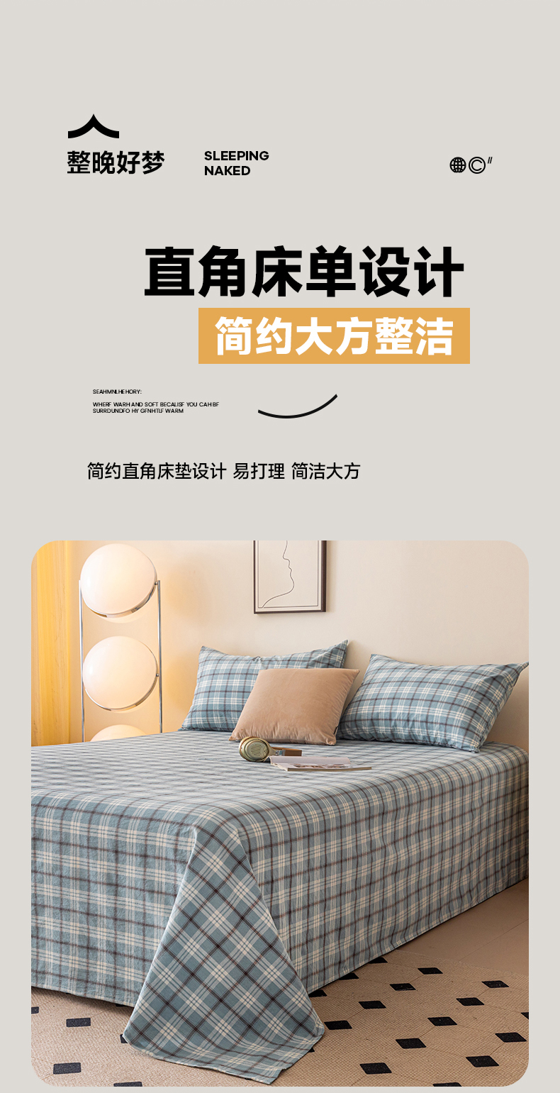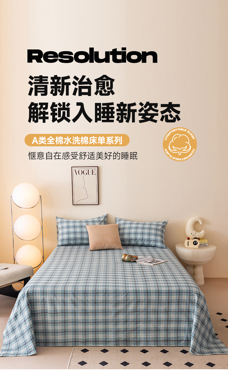 寐眠 2024新款全棉水洗棉床单床笠单品-单床单 蔚蓝格